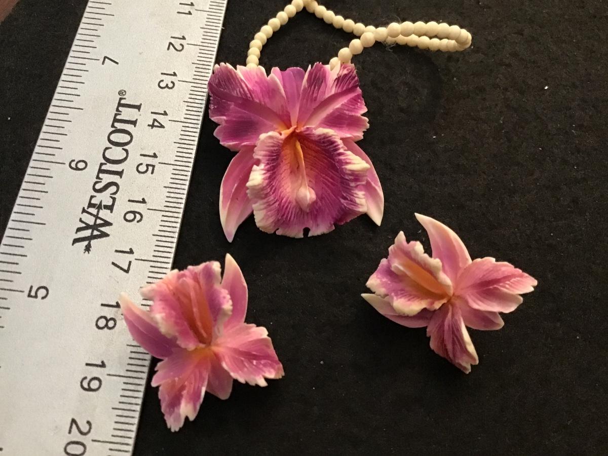 Beautiful Carved Celluloid orchid Set Wonderful Condition Vintage