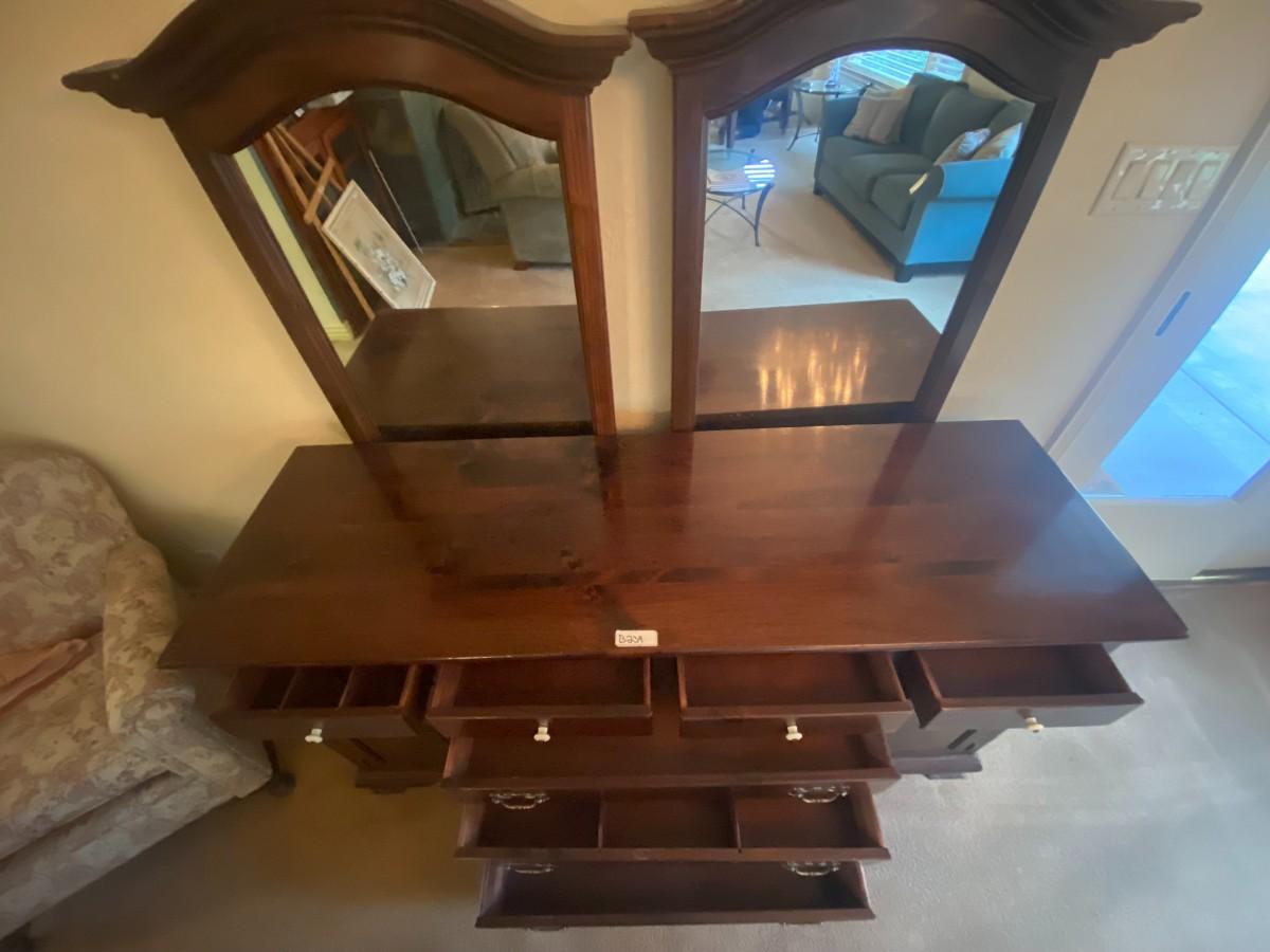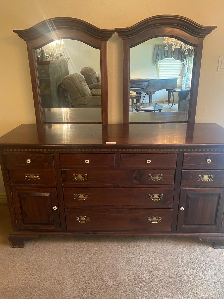 Beautiful Cherry Finish Ethan Allen 9 Drawer Dresser with Two Mirrors Excellent Condition