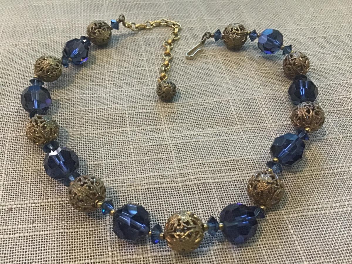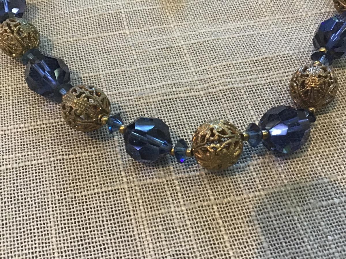 Beautiful Choker Vintage Blue Glass Beaded Necklace