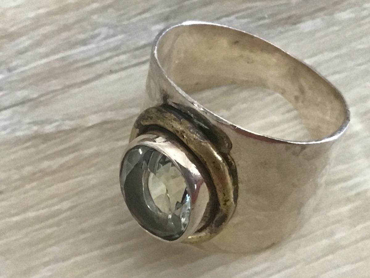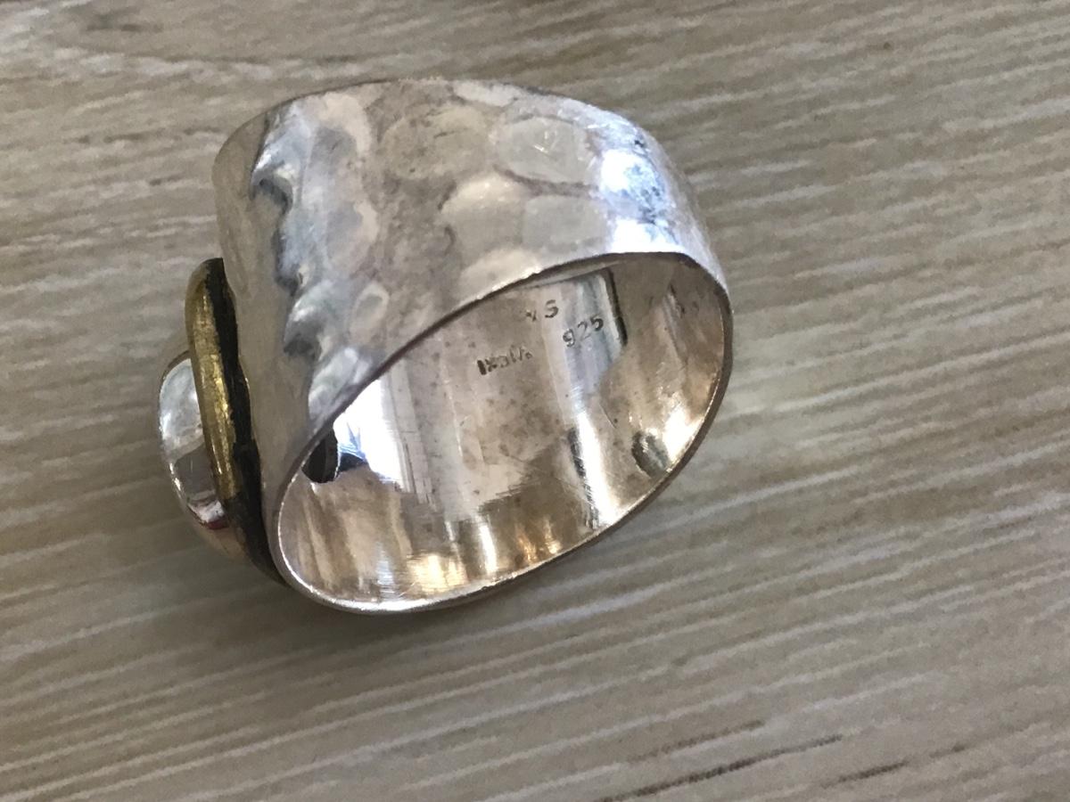 Beautiful Chunky 925 With Brass inner Blue Stone
