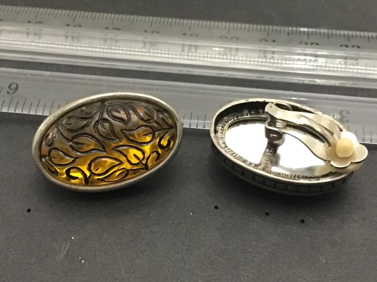 Beautiful Chunky Clip on Earrings Yellow Amber Tone Black Leaf Nice