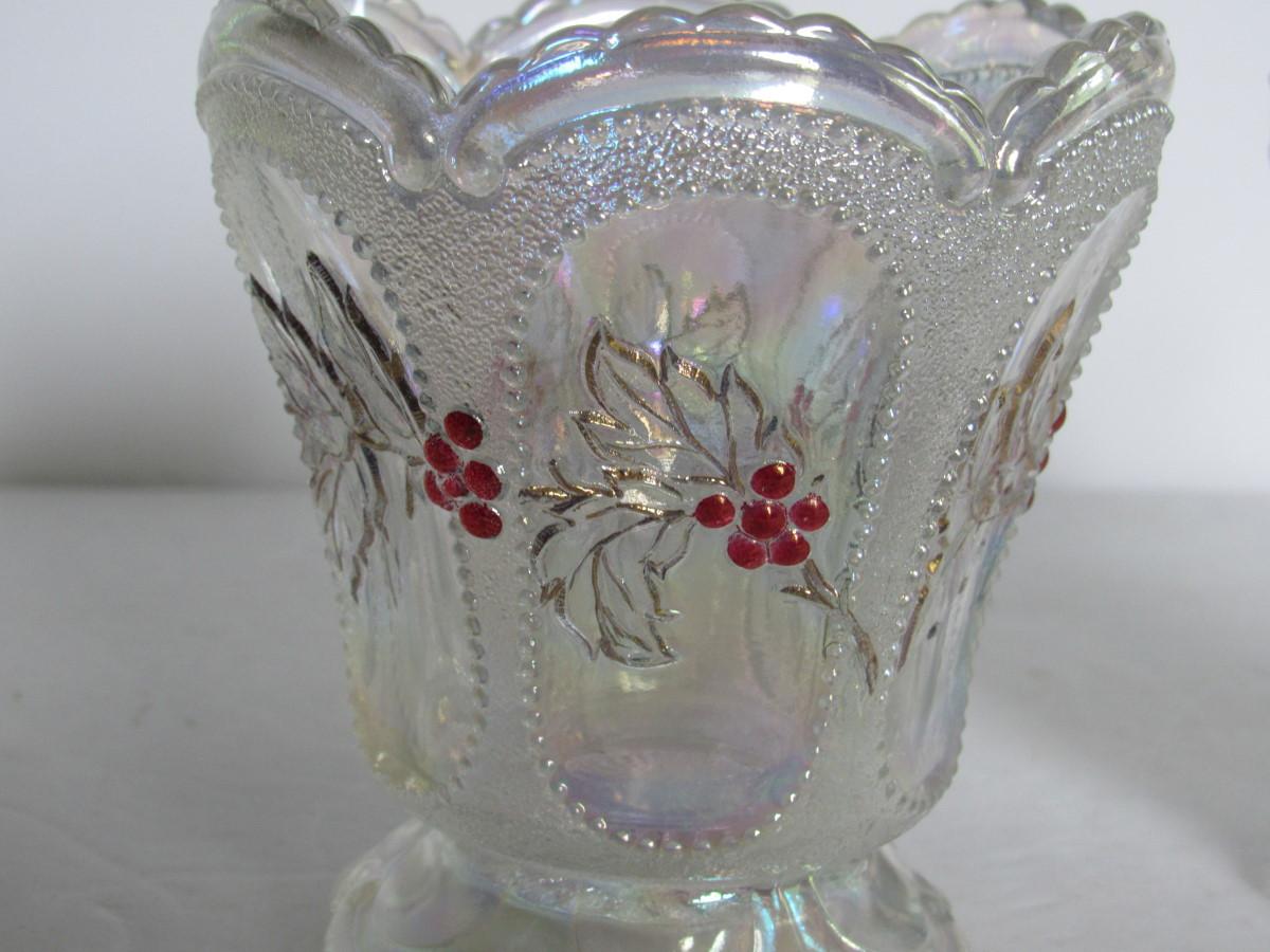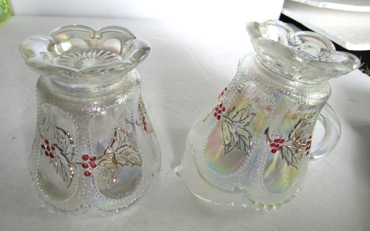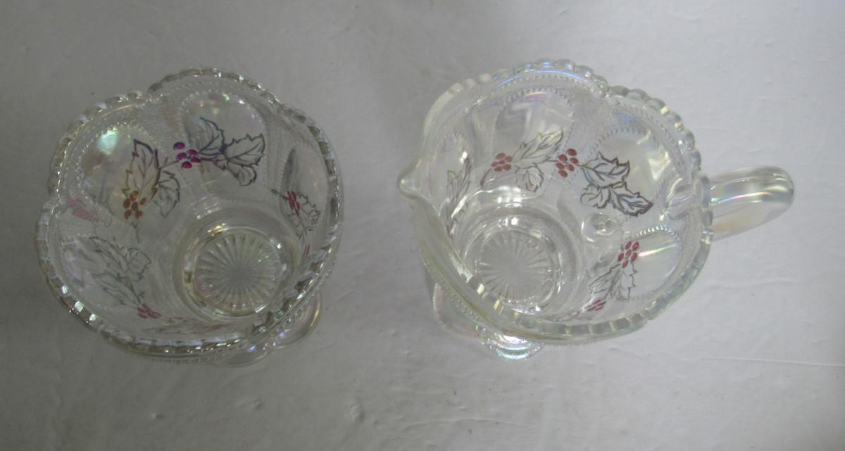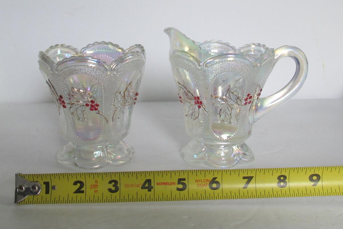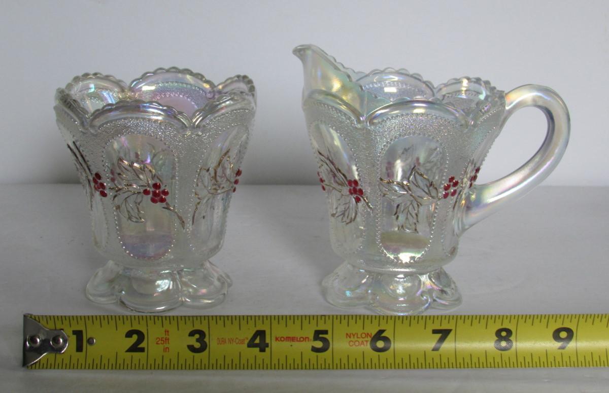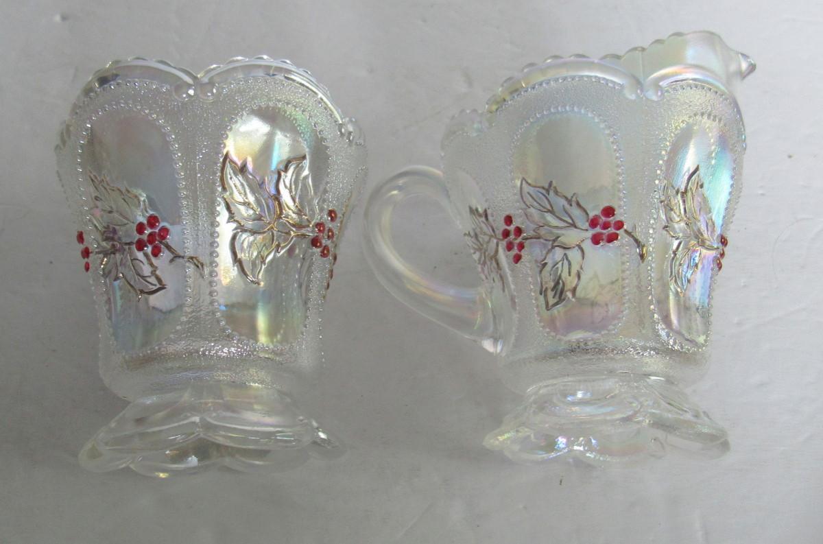 Beautiful Clear Carnival Glass Sugar and Creamer Set, Mosser Glass, Beaded Oval and Holly