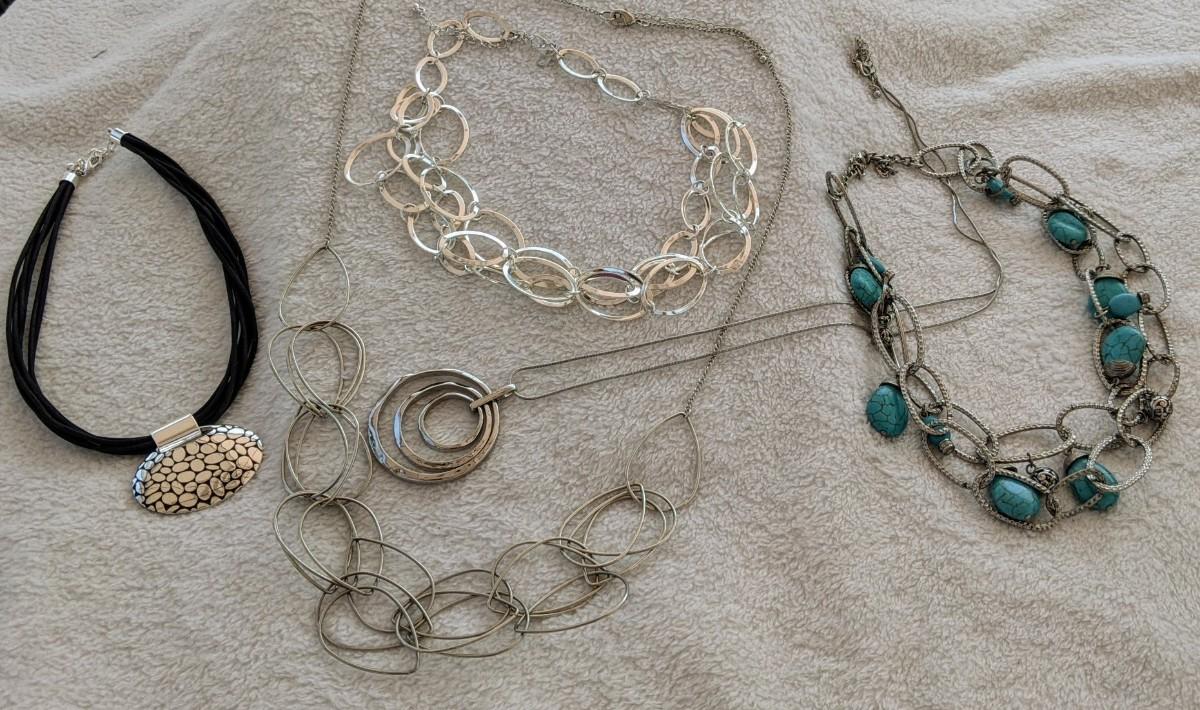 Beautiful collection of silver costume necklaces. Please see all pictures as they are the best representation of the items. The pictures show condition, measurements if taken, and what is included in the lot. Due to the large amount that we photograph and the time frame, we are not always able to take measurements. All items unless noted, are pre-owned and have been used. If you purchased furniture, you must bring help. We do not allow one person to carry large furniture out on their own. Bring help, tools and a truck for the safety of our client’s homes, and your personal safety.