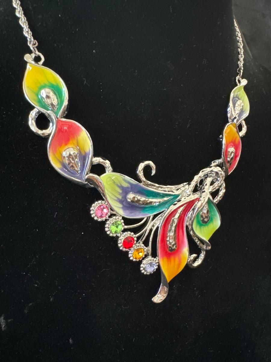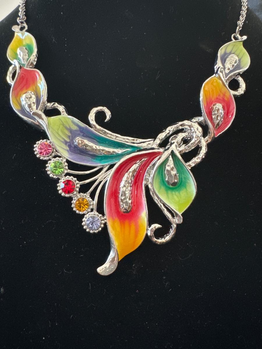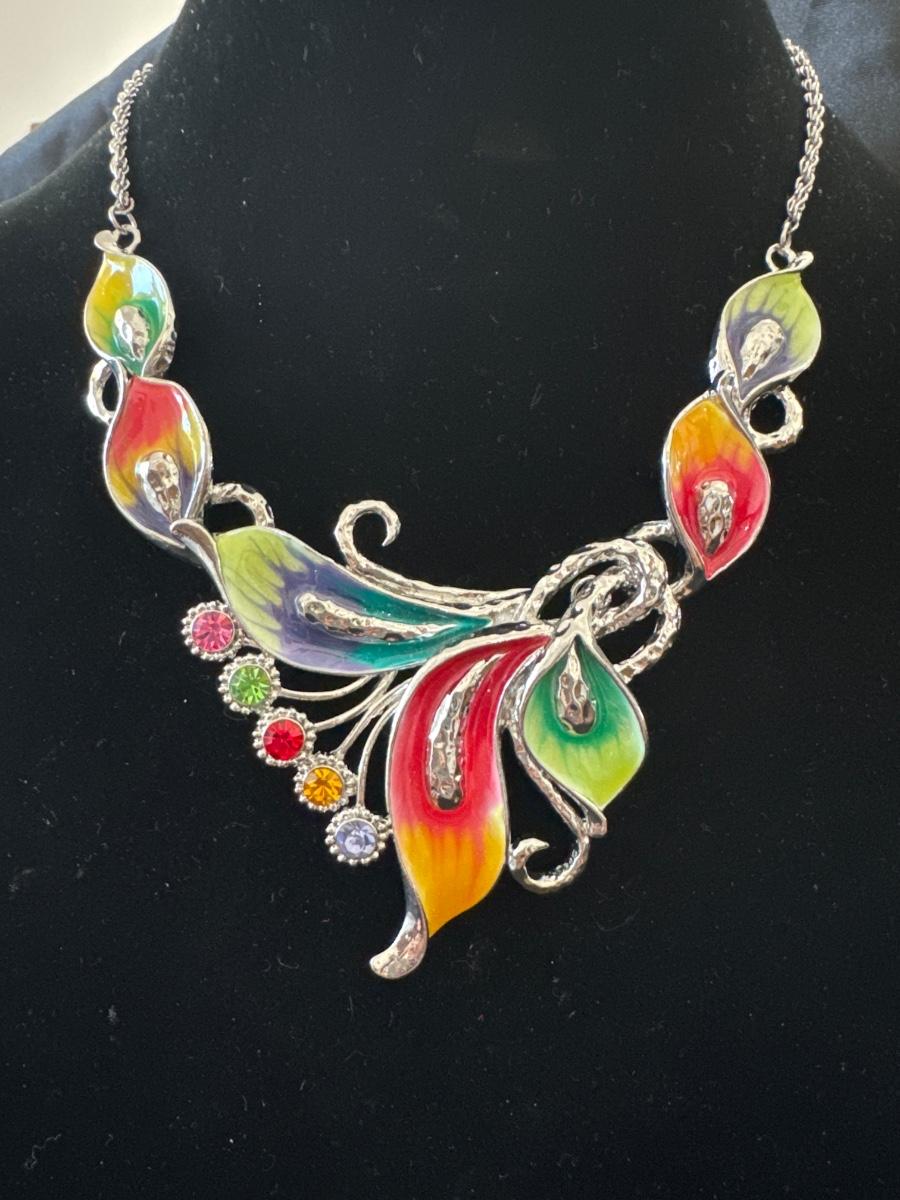 Beautiful, colorful enamel women’s statement necklace