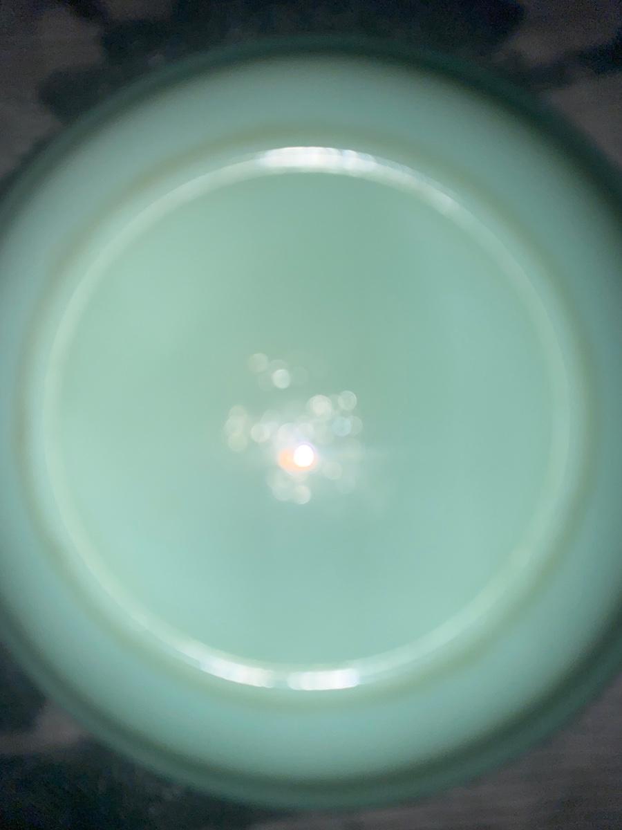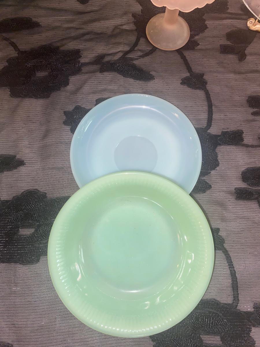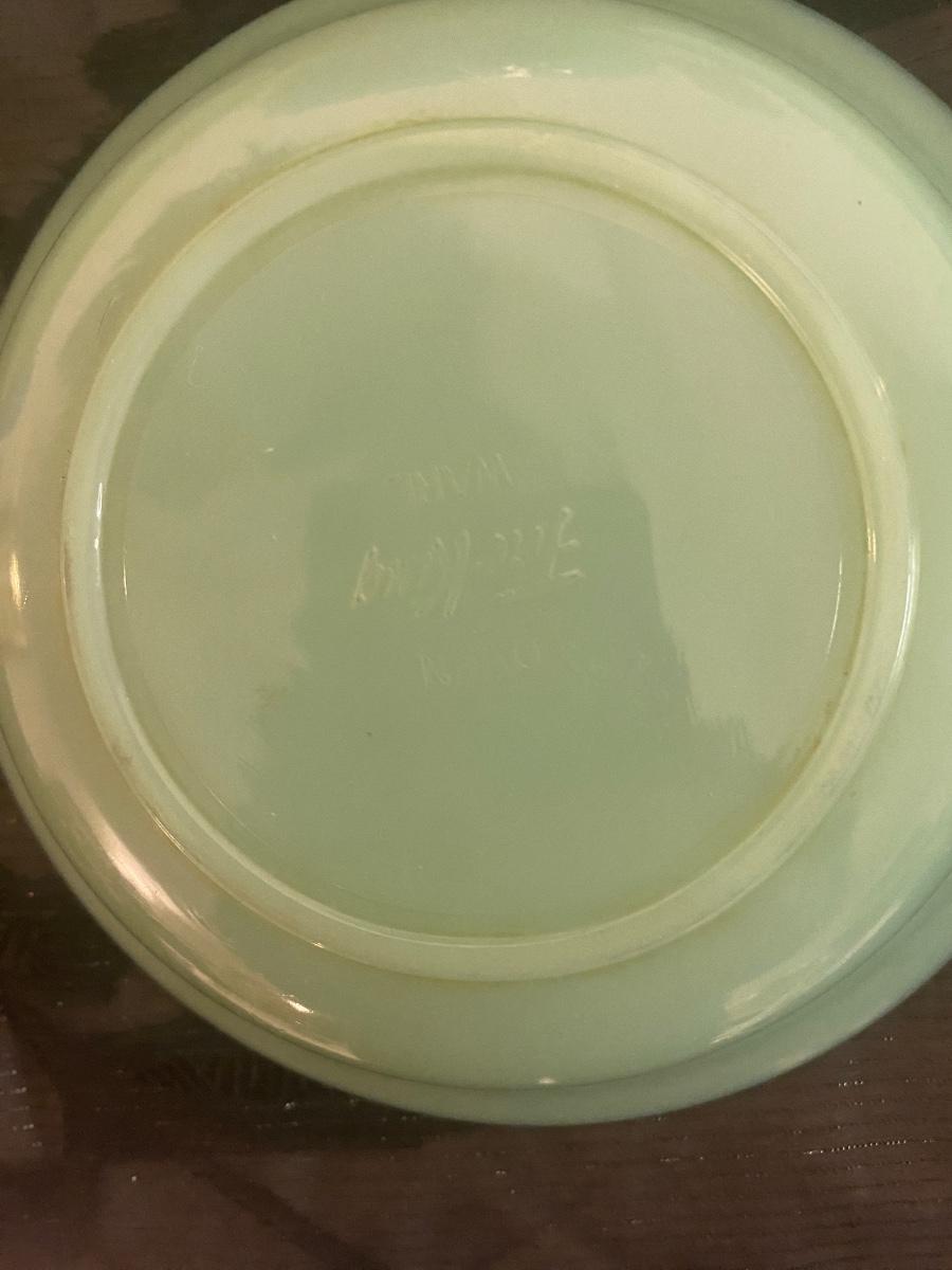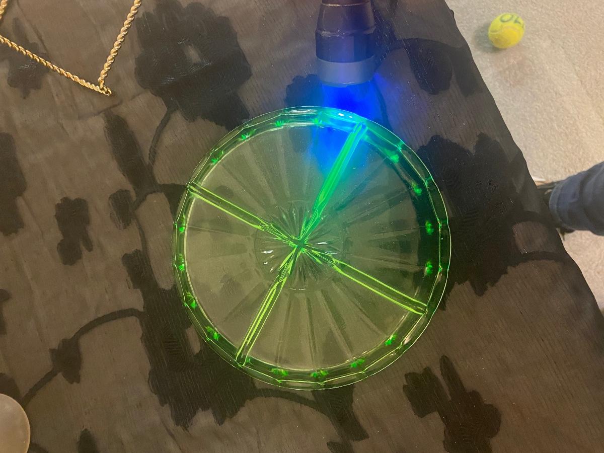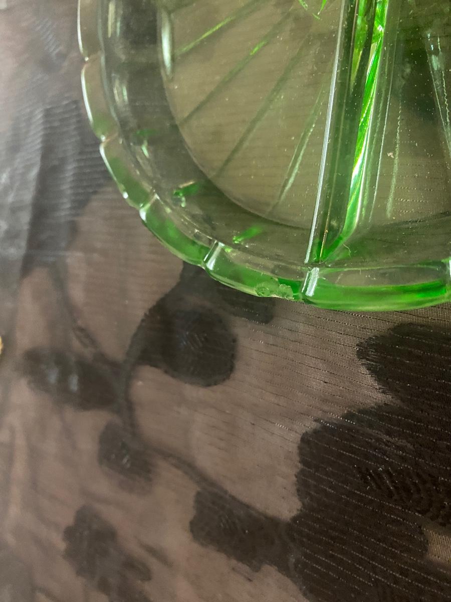 The uranium Green separated dish has a small chip that can be easily repaired if purchased. It is pictured