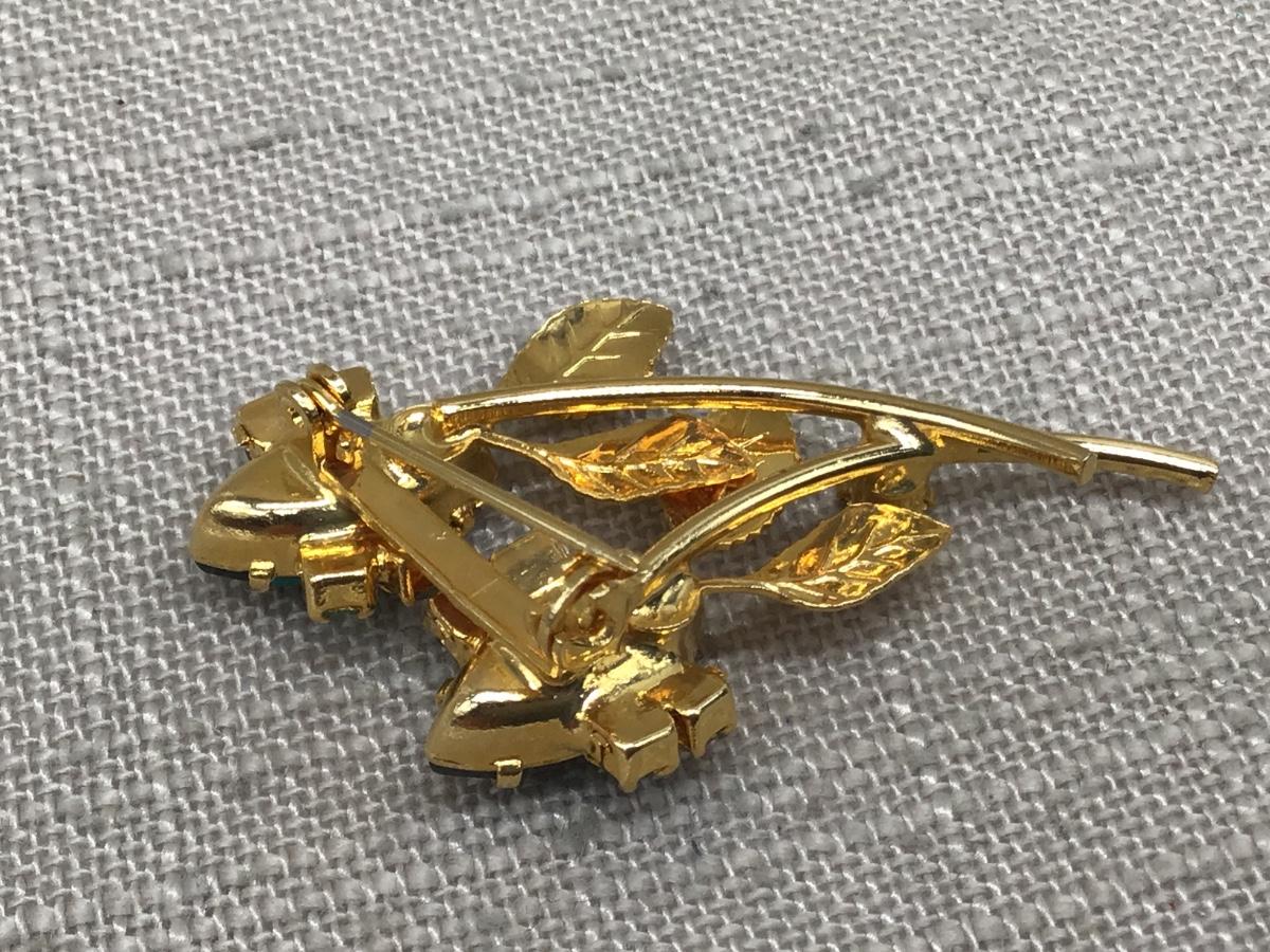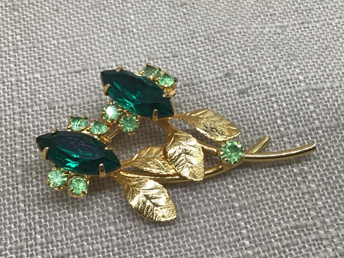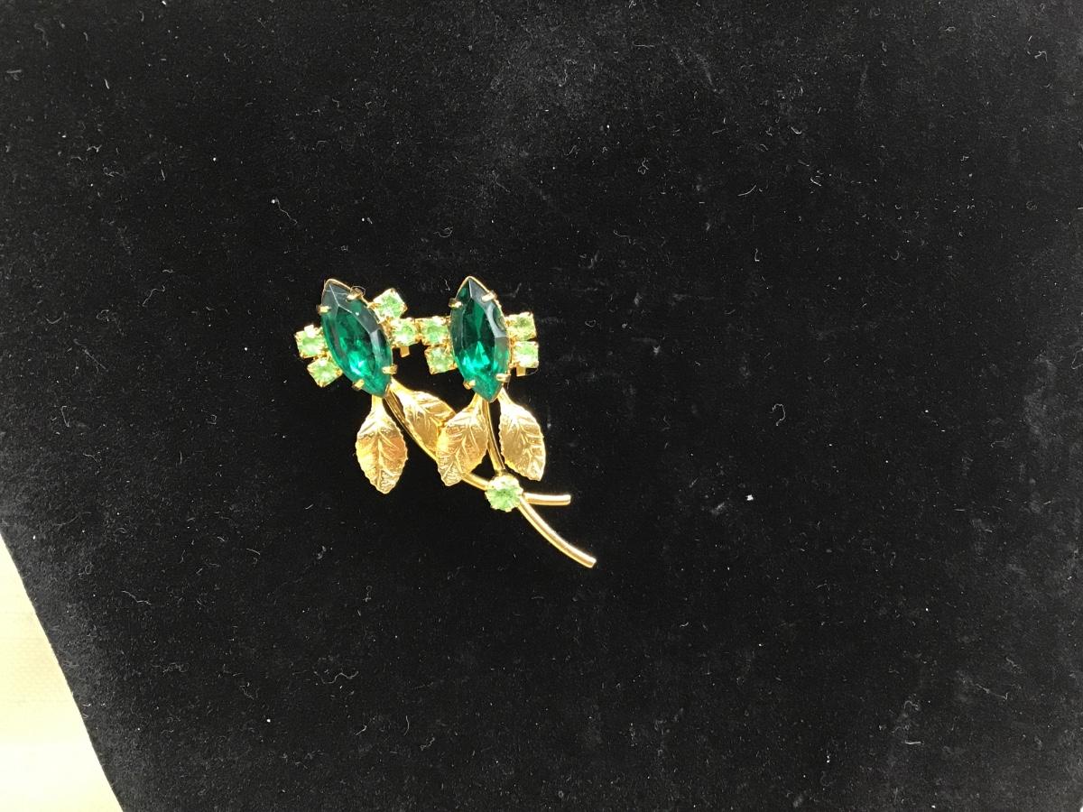 Beautiful Colors of Green Gold Tone Rhinestone Brooch