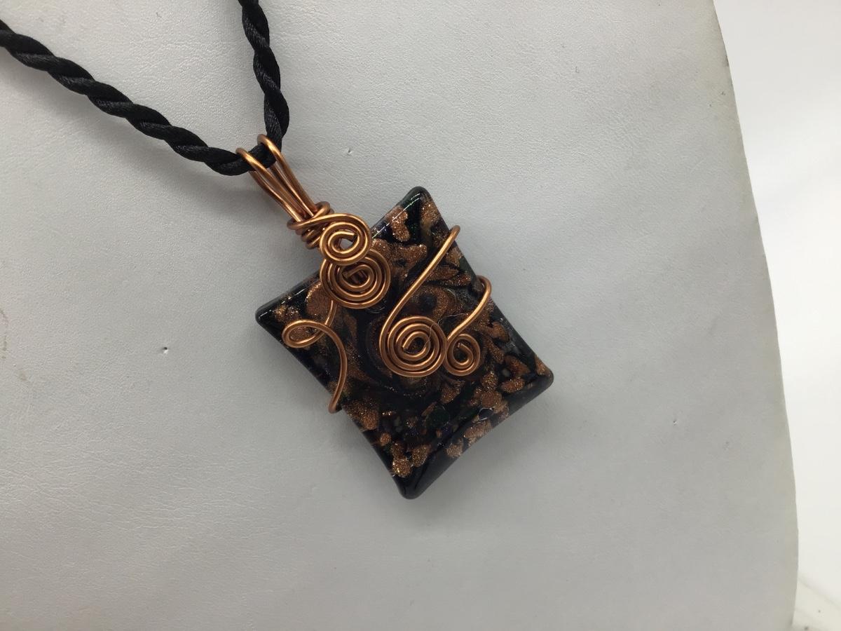 Beautiful Copper and Glass Pendant and nylon Necklace