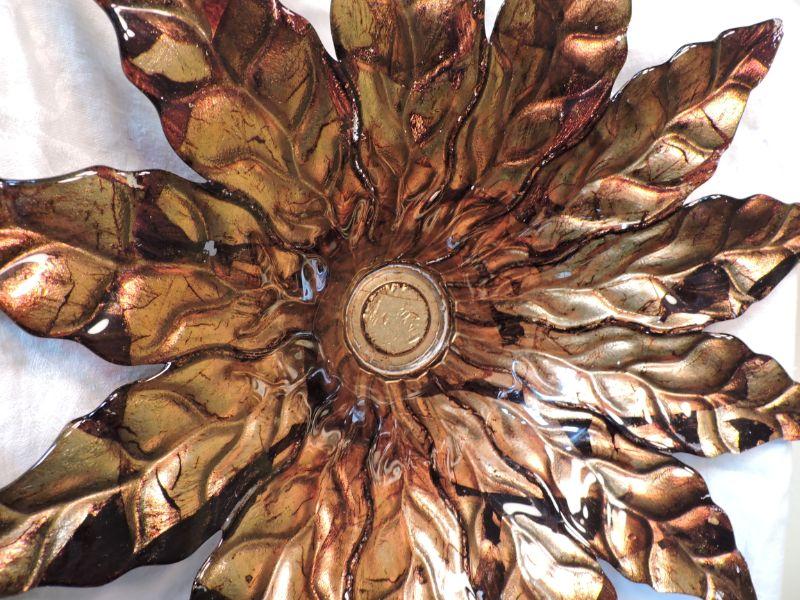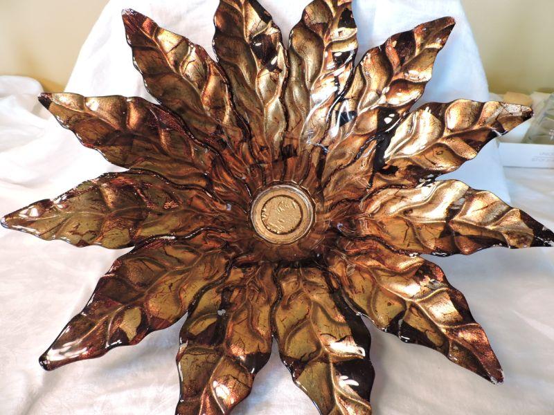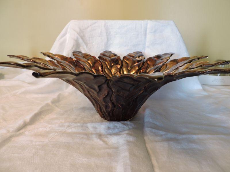 Beautiful copper leaf bowl in shape of flower. Large at 16" across. **Please read Terms and Conditions before placing a bid. Pick up is Wednesday, September 25 from 4pm to 7pm and Saturday, September 28 from 9am to 1pm in Williamstown, NJ. All sales are final. All sales are as is, where is. Please review all photos. Any props included in photos are not included in listing. All measurements are approximate.