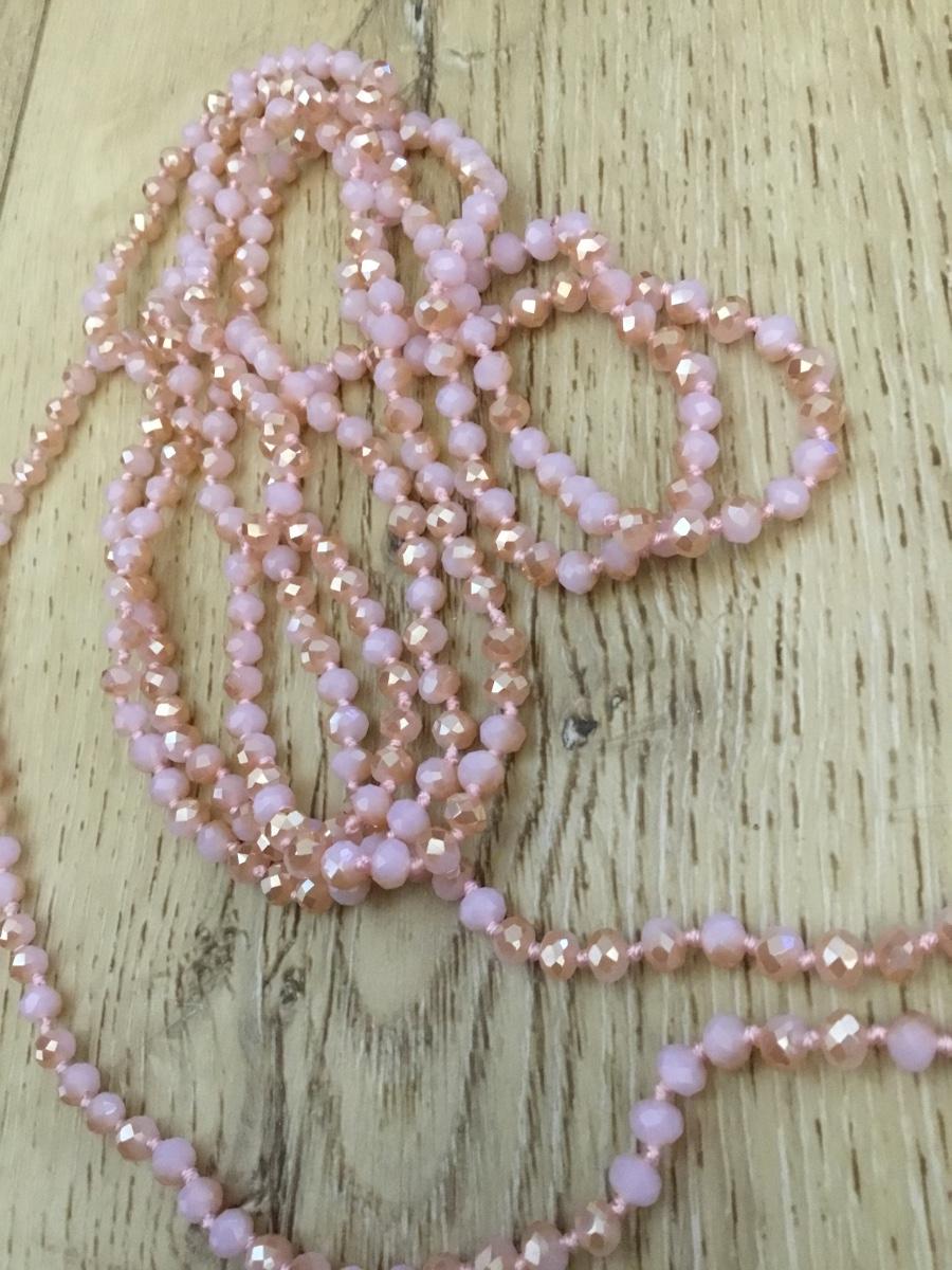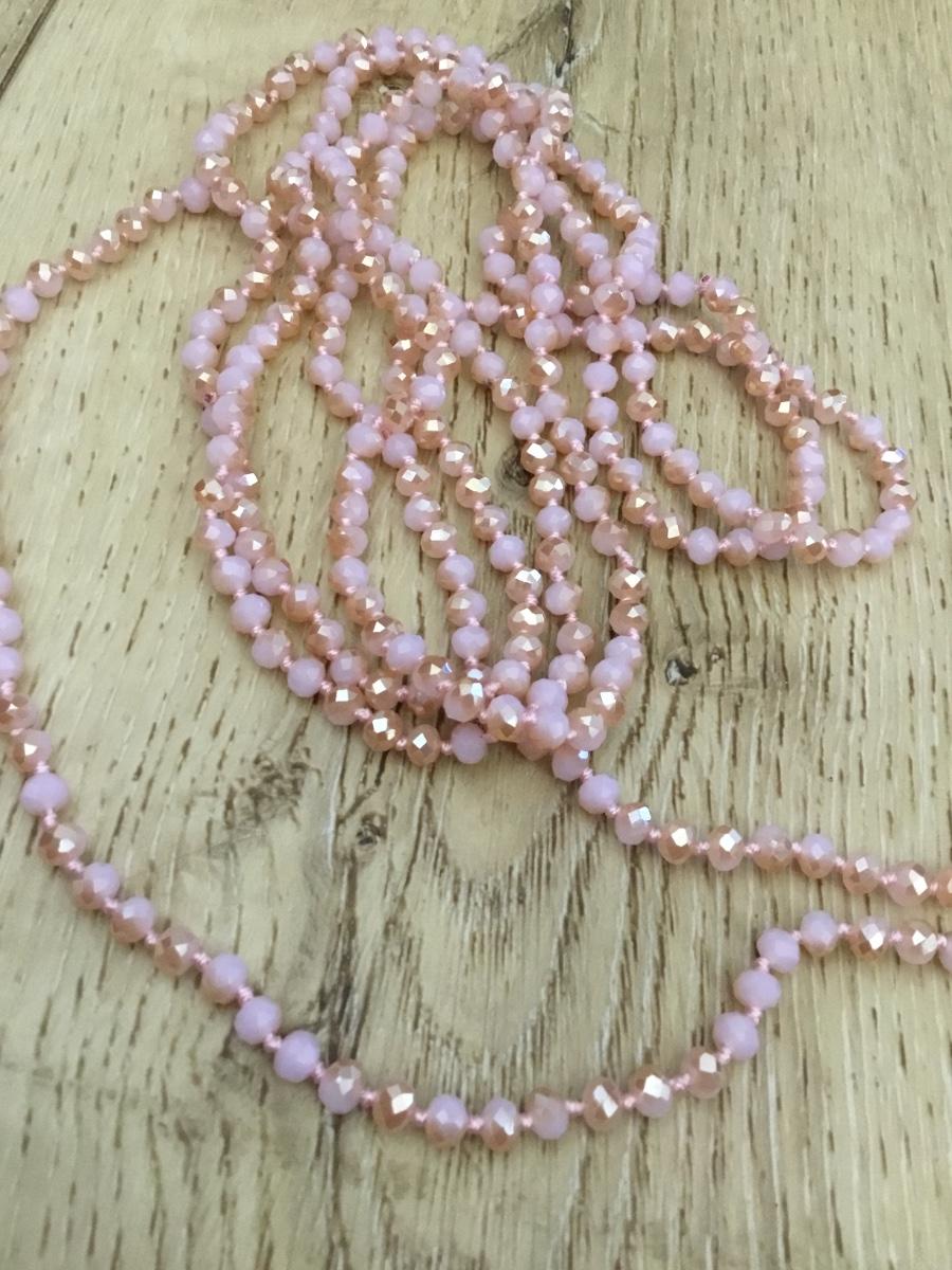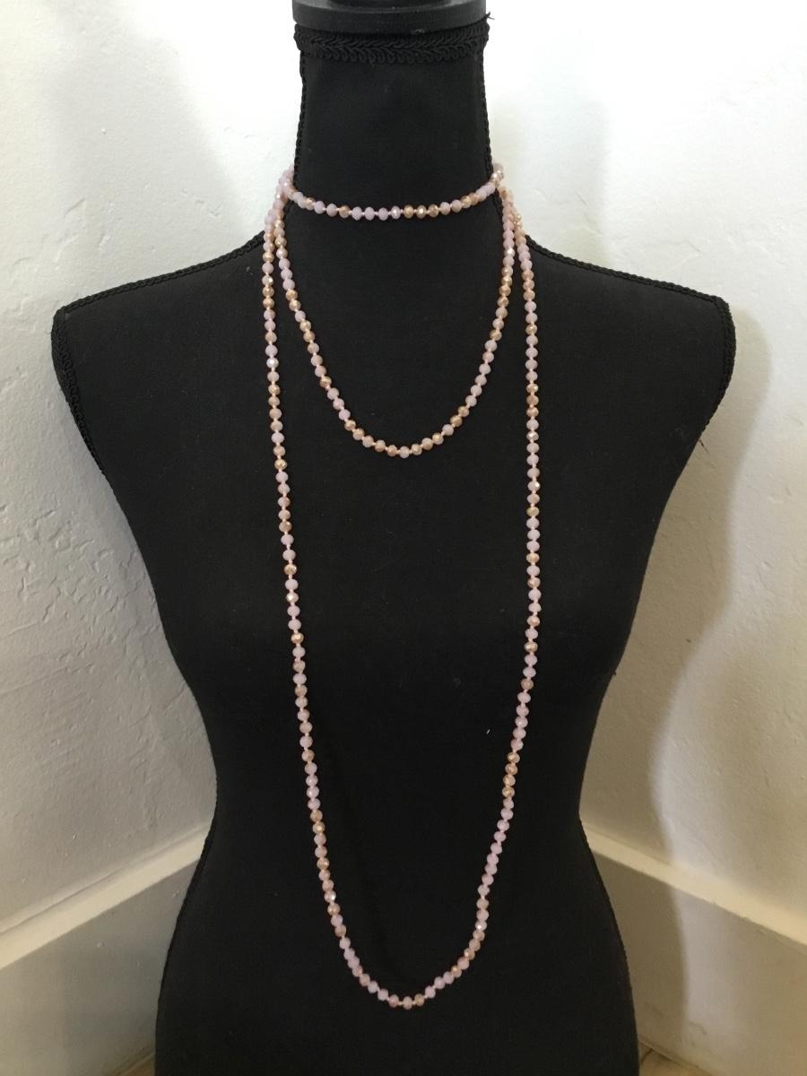 Beautiful cotton candy, pink stone and glass beaded long necklace
