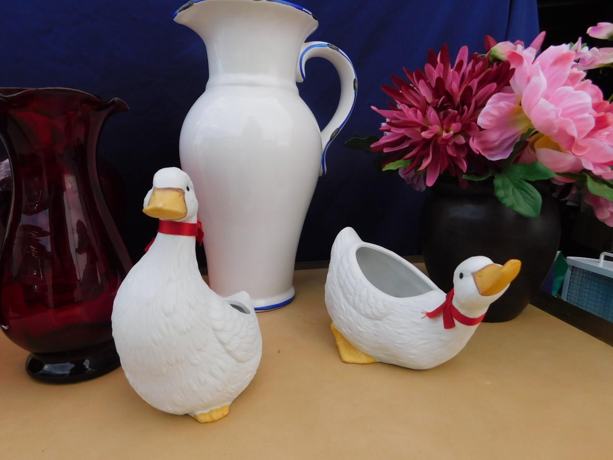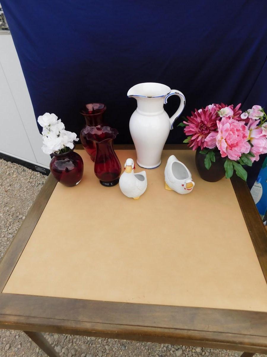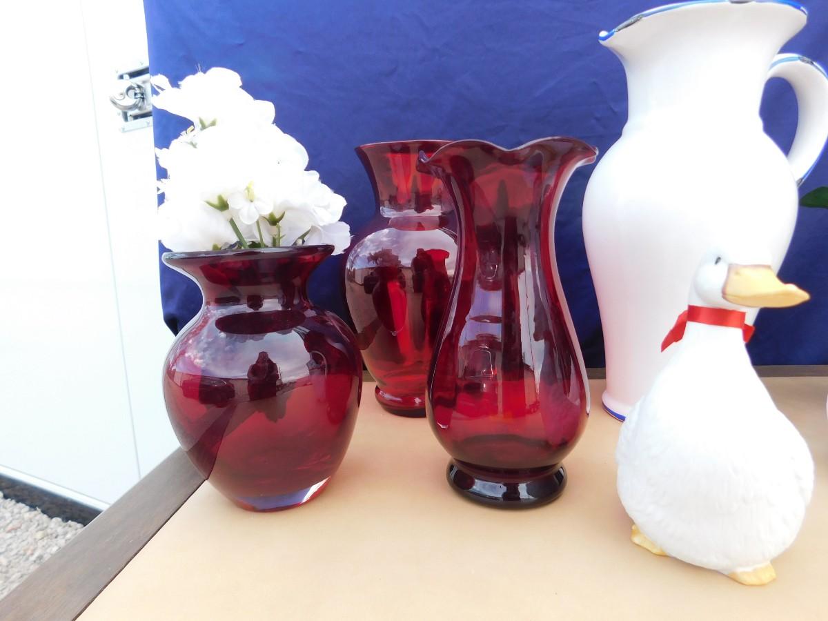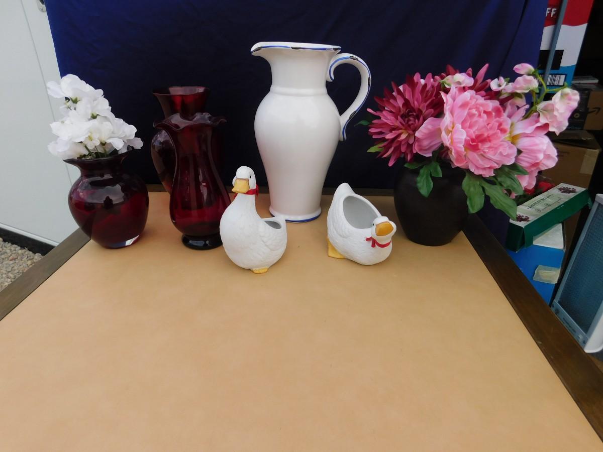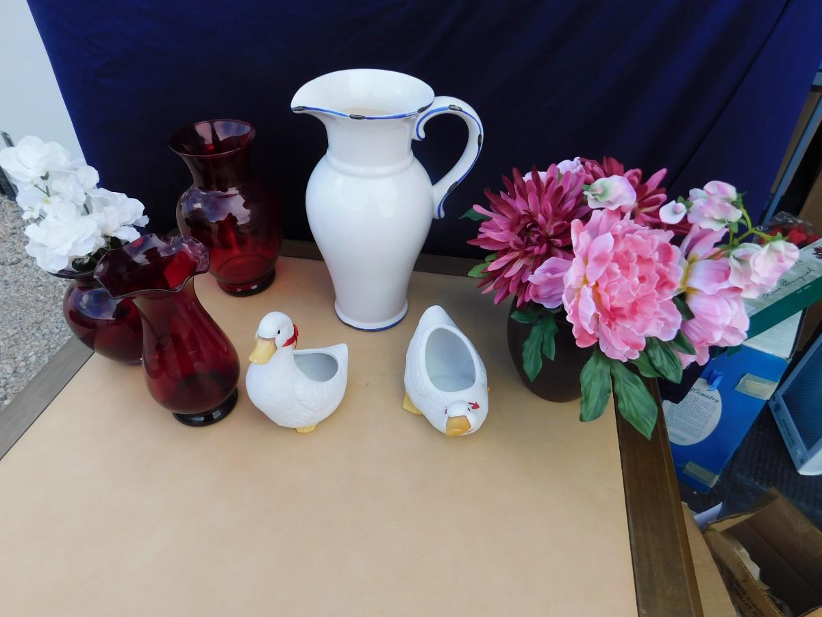 BEAUTIFUL CRANBERRY VASES, CUTE AVON DUCK PLANTERS & MORE