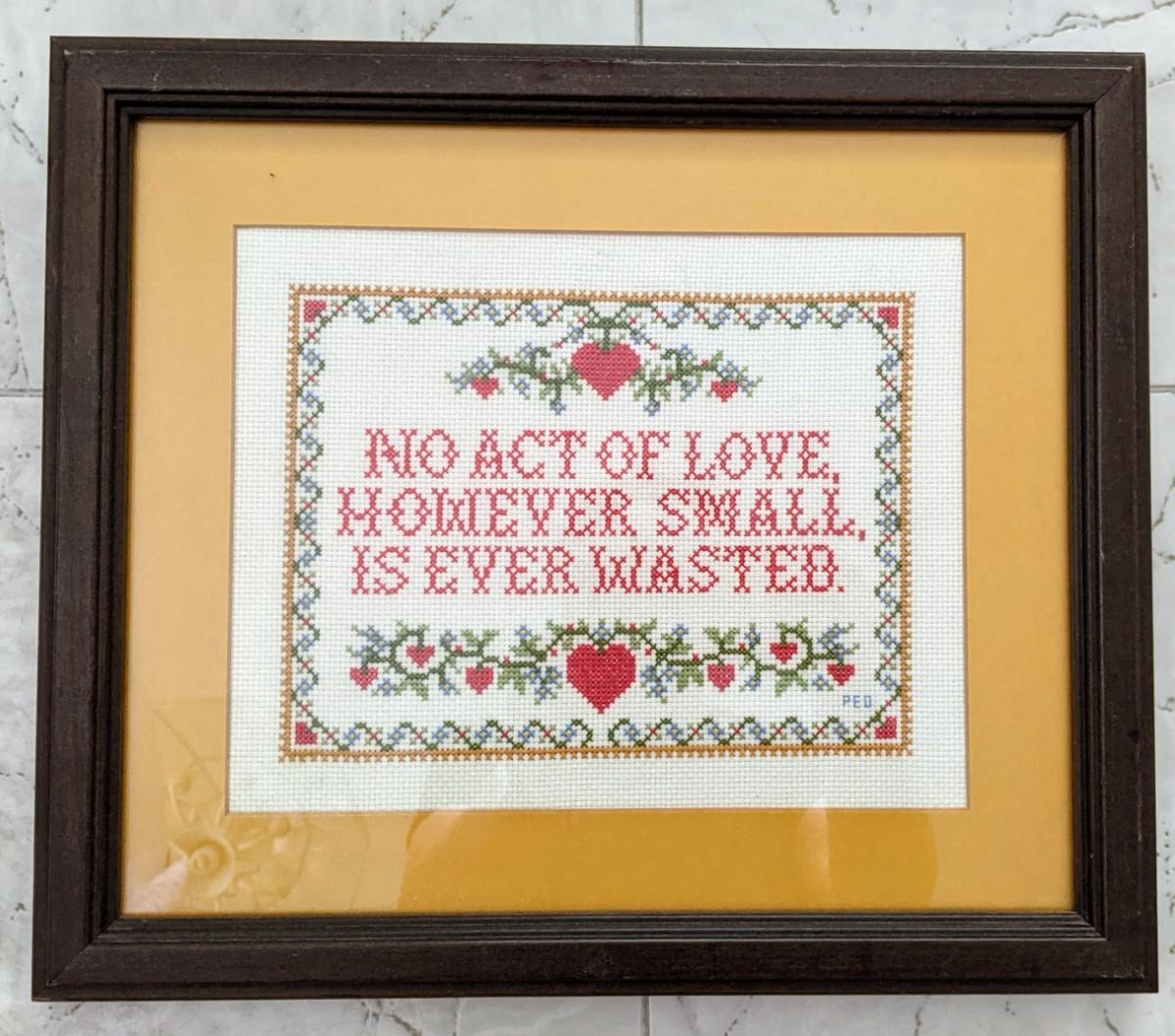 Beautiful cross stitch No act of love, however small, is ever wasted
