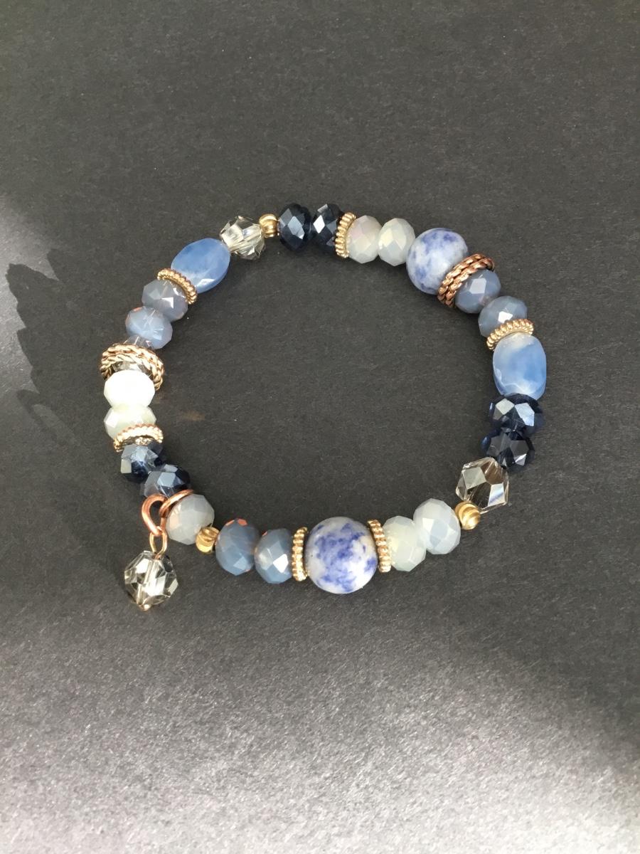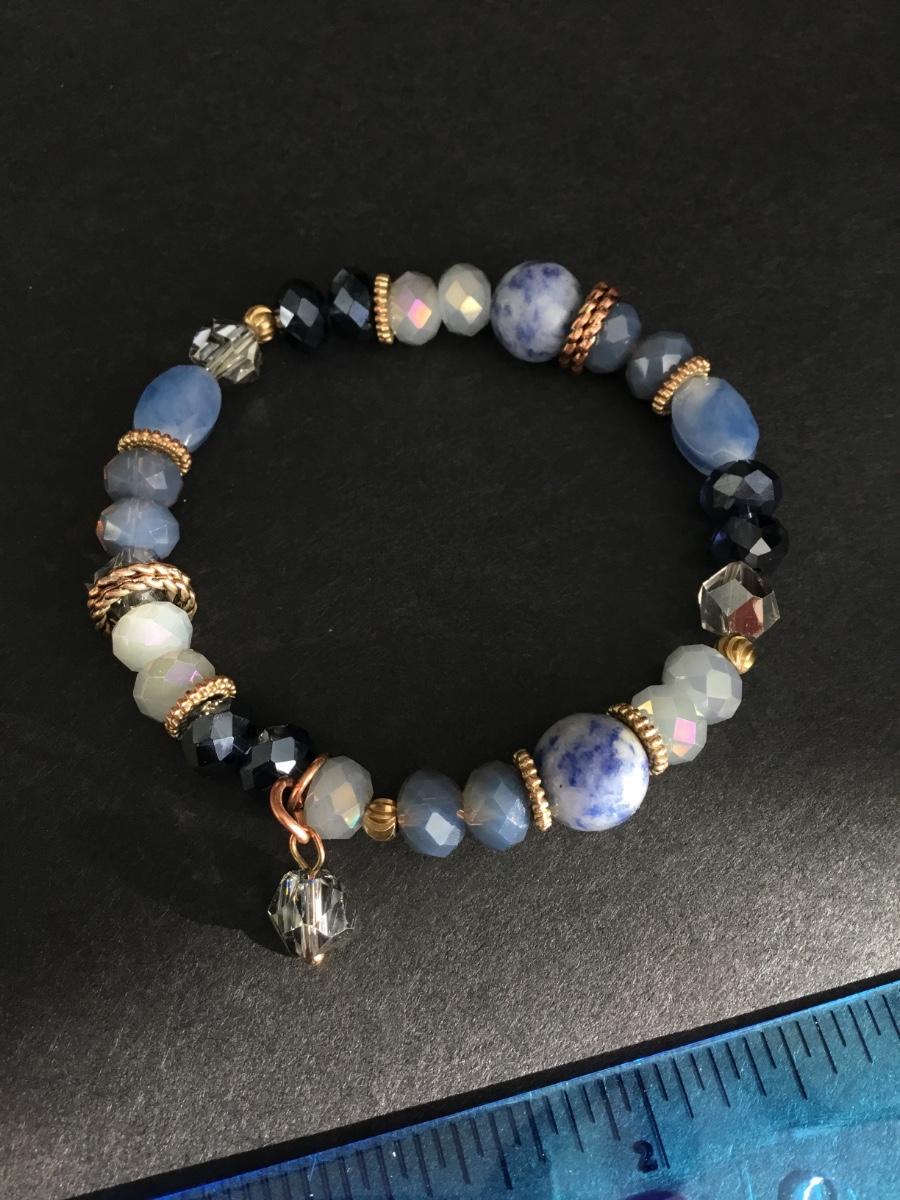 Beautiful, crystal and lapis Stone bead stretch bracelet