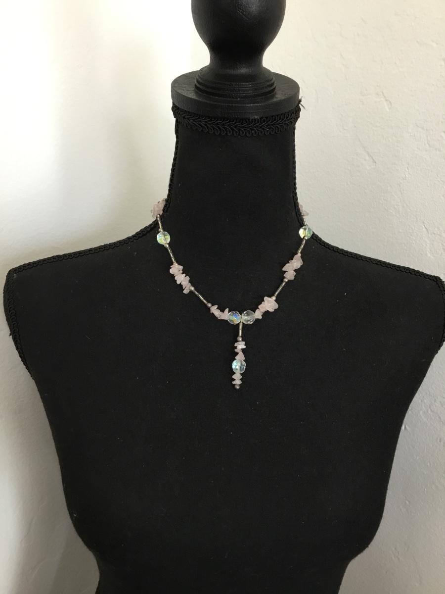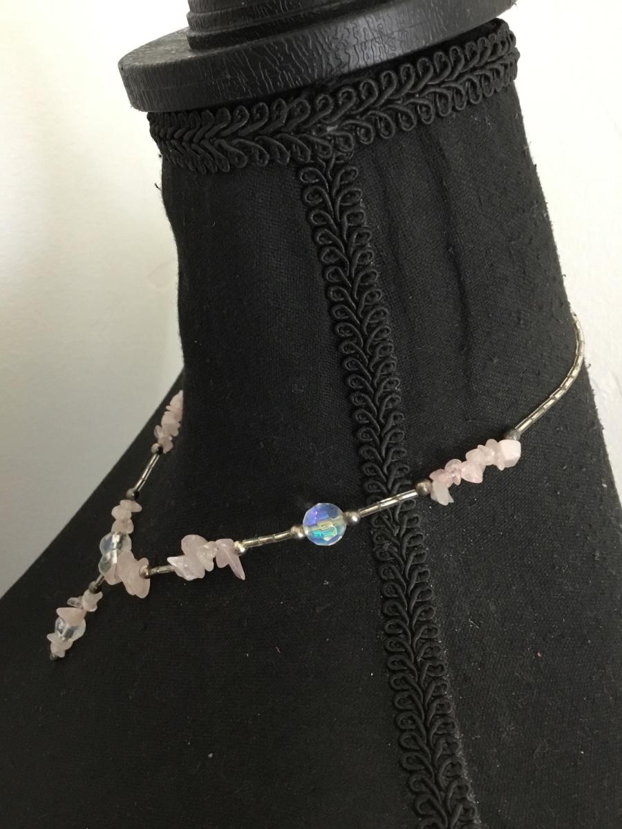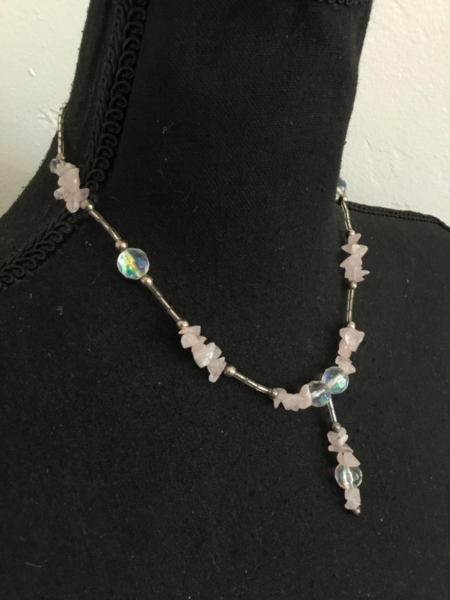 Beautiful, crystal bead liquid, , silver & rose, quartz statement, necklace