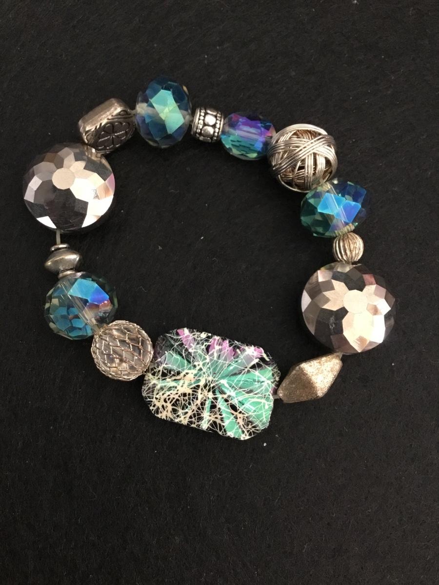 Beautiful crystal beaded, multicolored stretch, fashion bracelet