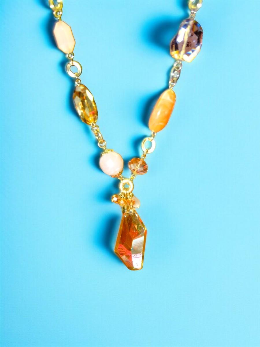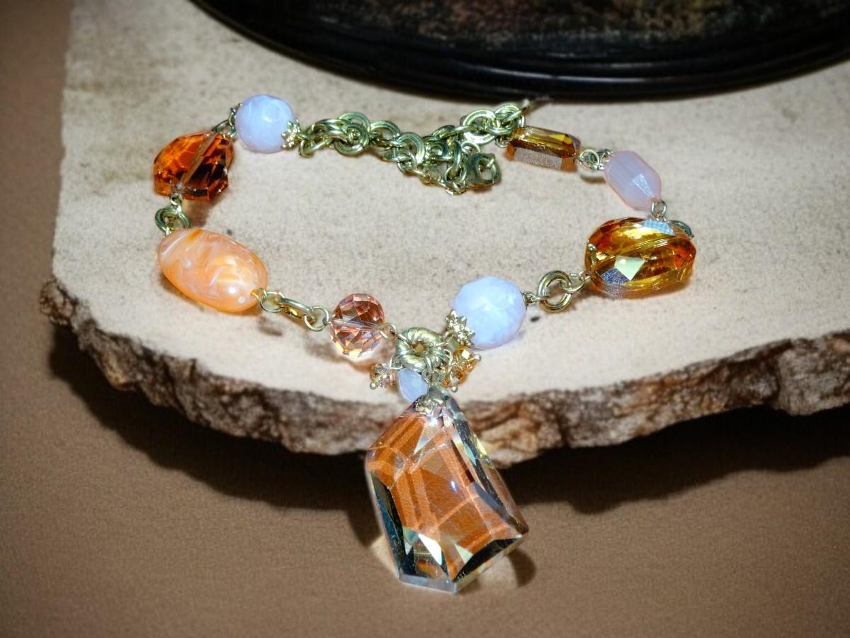 Beautiful Crystal & Gemstone Necklace, Aurora Borreallis Stone, Amber Fall Colors