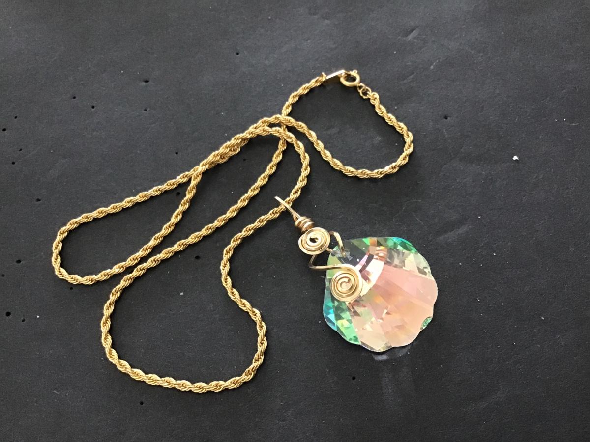 Beautiful Crystal sea Shell Pendant with Gold Tone Chain