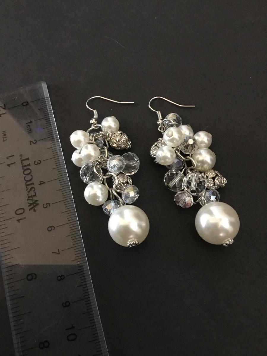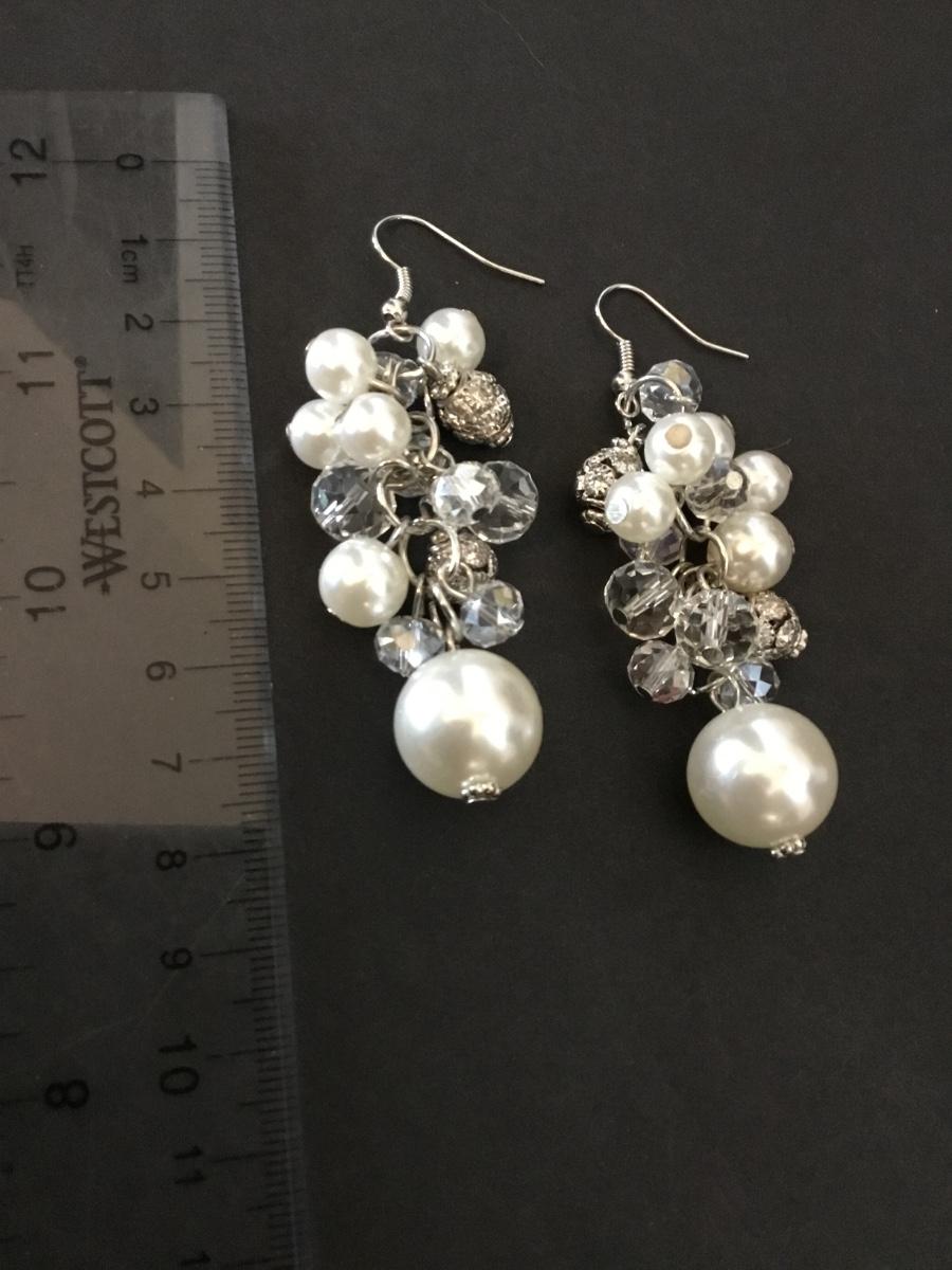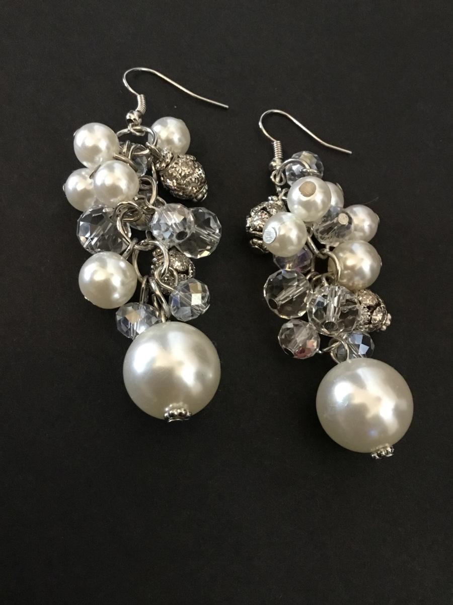 Beautiful, crystal, silver toned, faux, pearl dangle earrings