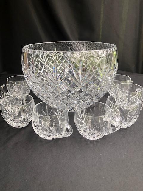 Beautiful Cut Crystal Punch Bowl and 8 cups.