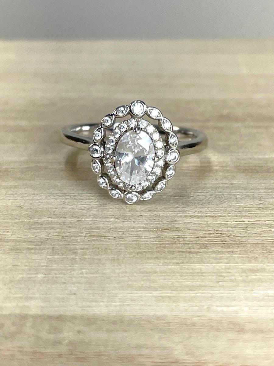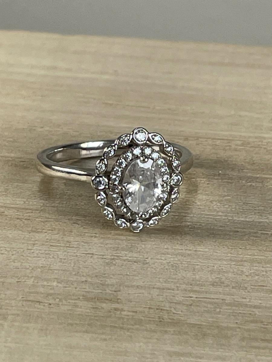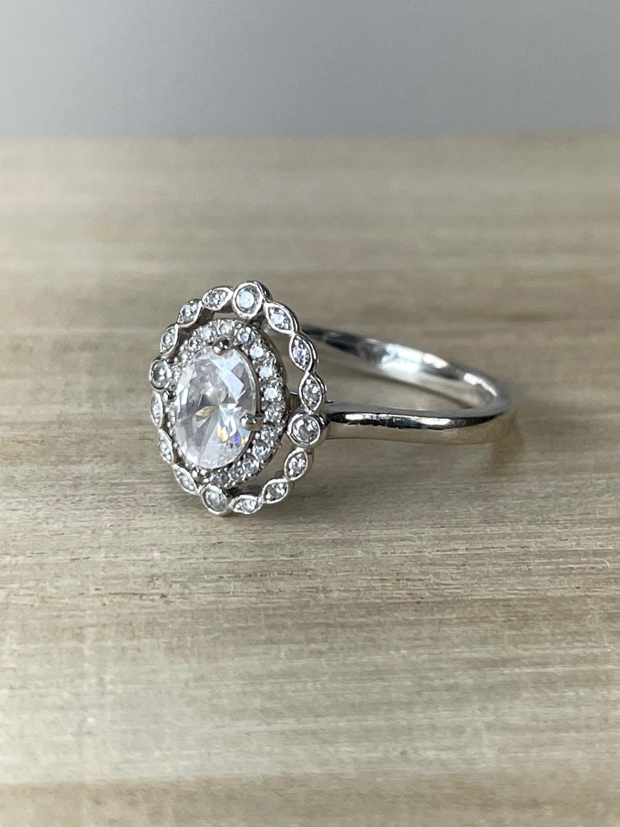 Beautiful CZ Halo Sterling Silver Ring 7.5