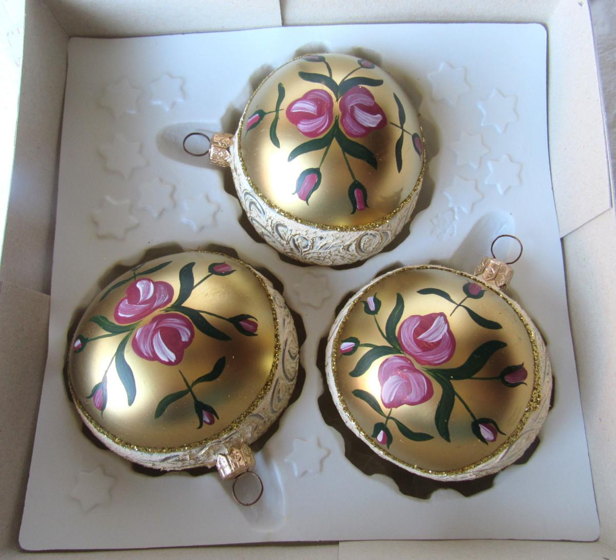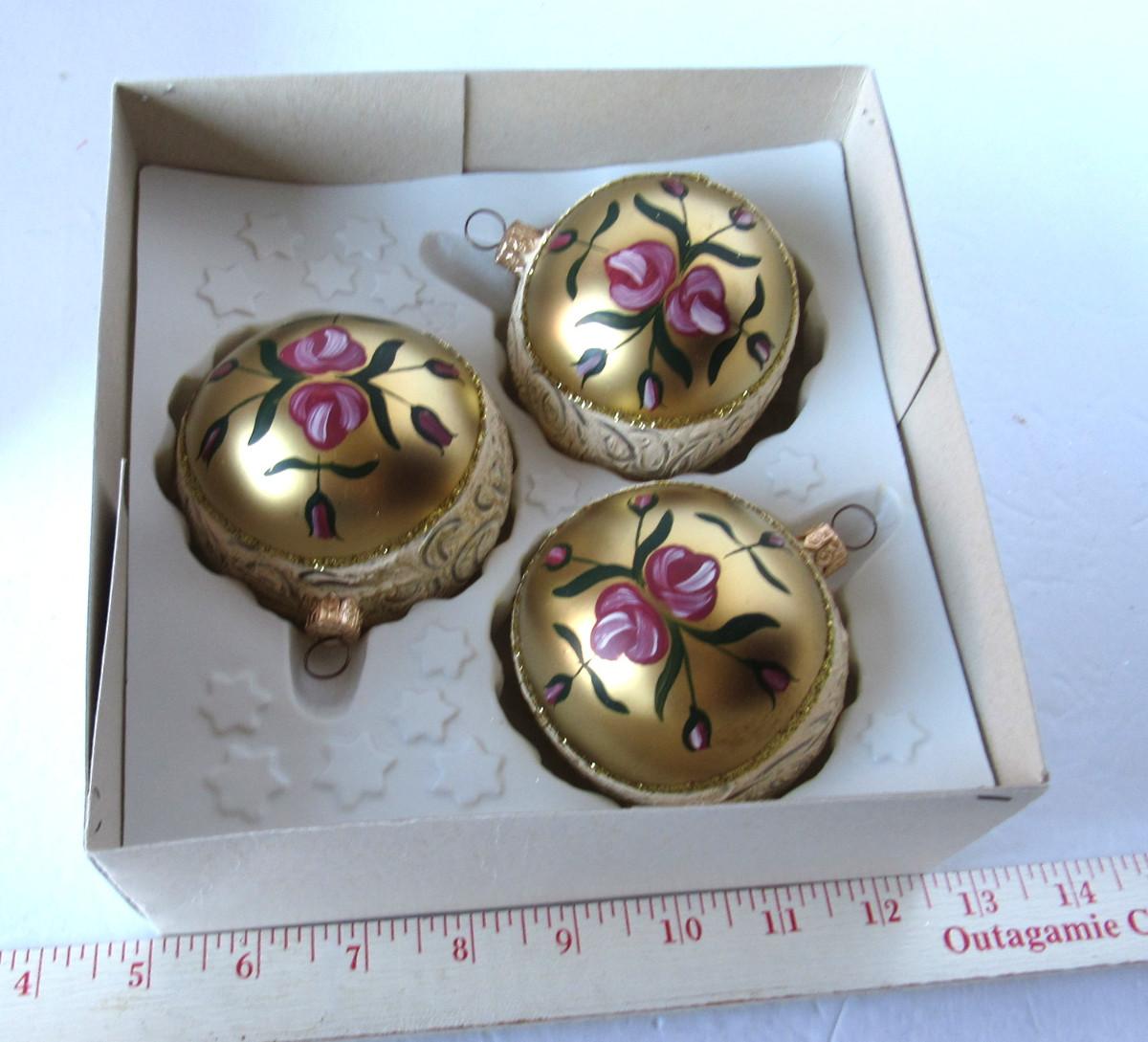 Beautiful Czech Republic Hand Painted Glass Christmas Ornaments
