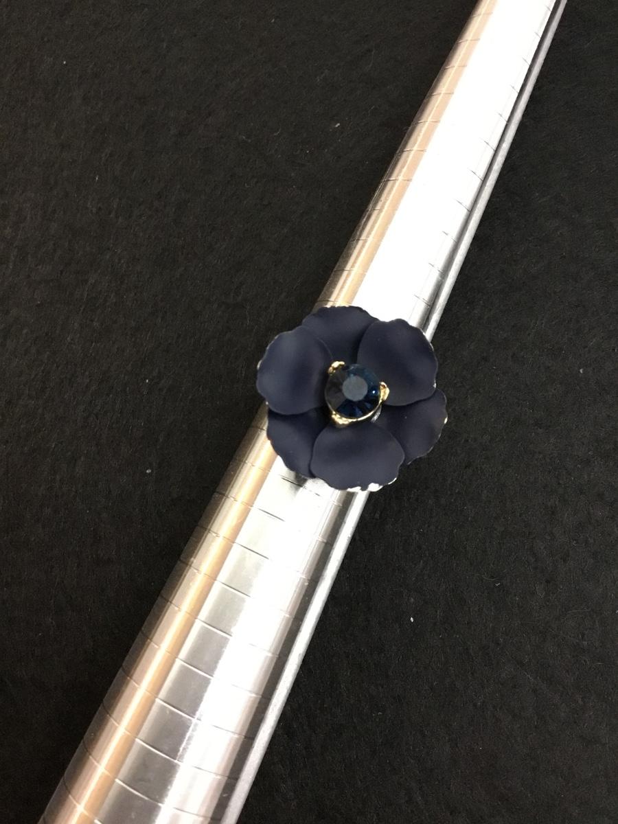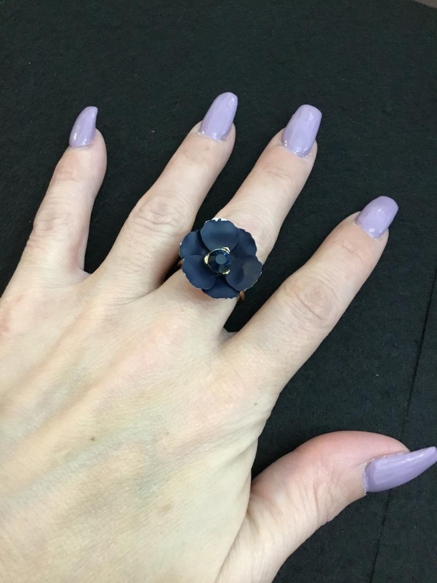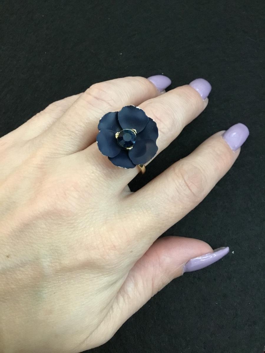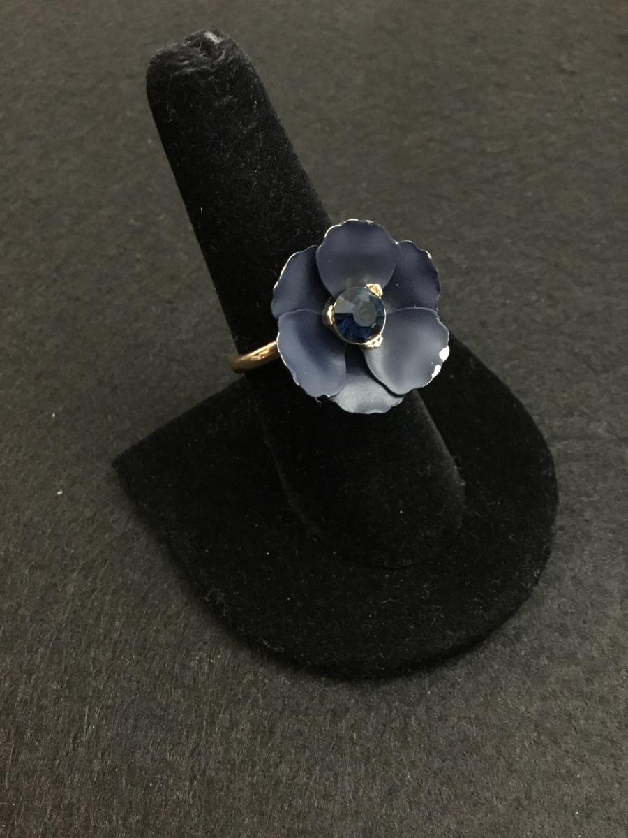 Beautiful, dark blue flower with sapphire, colored rhinestone Gold tone, fashion ring