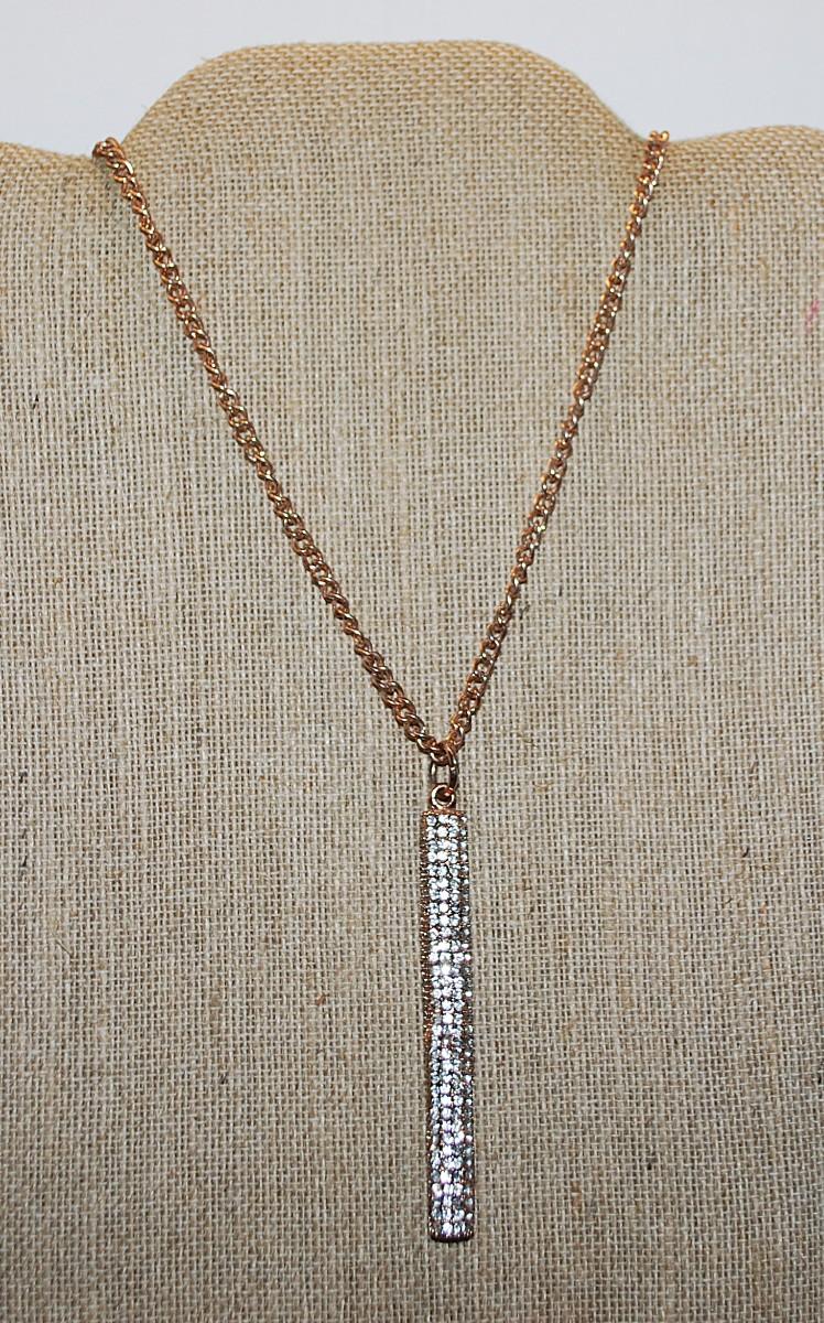 Beautiful "Diamond Jeweled" PILLAR NECKLACE with Rose Gold Chain and Lobster Clasp 42" L