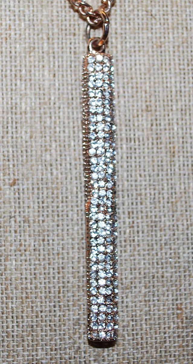 Beautiful "Diamond Jeweled" PILLAR NECKLACE with Rose Gold Chain and Lobster Clasp 42" L