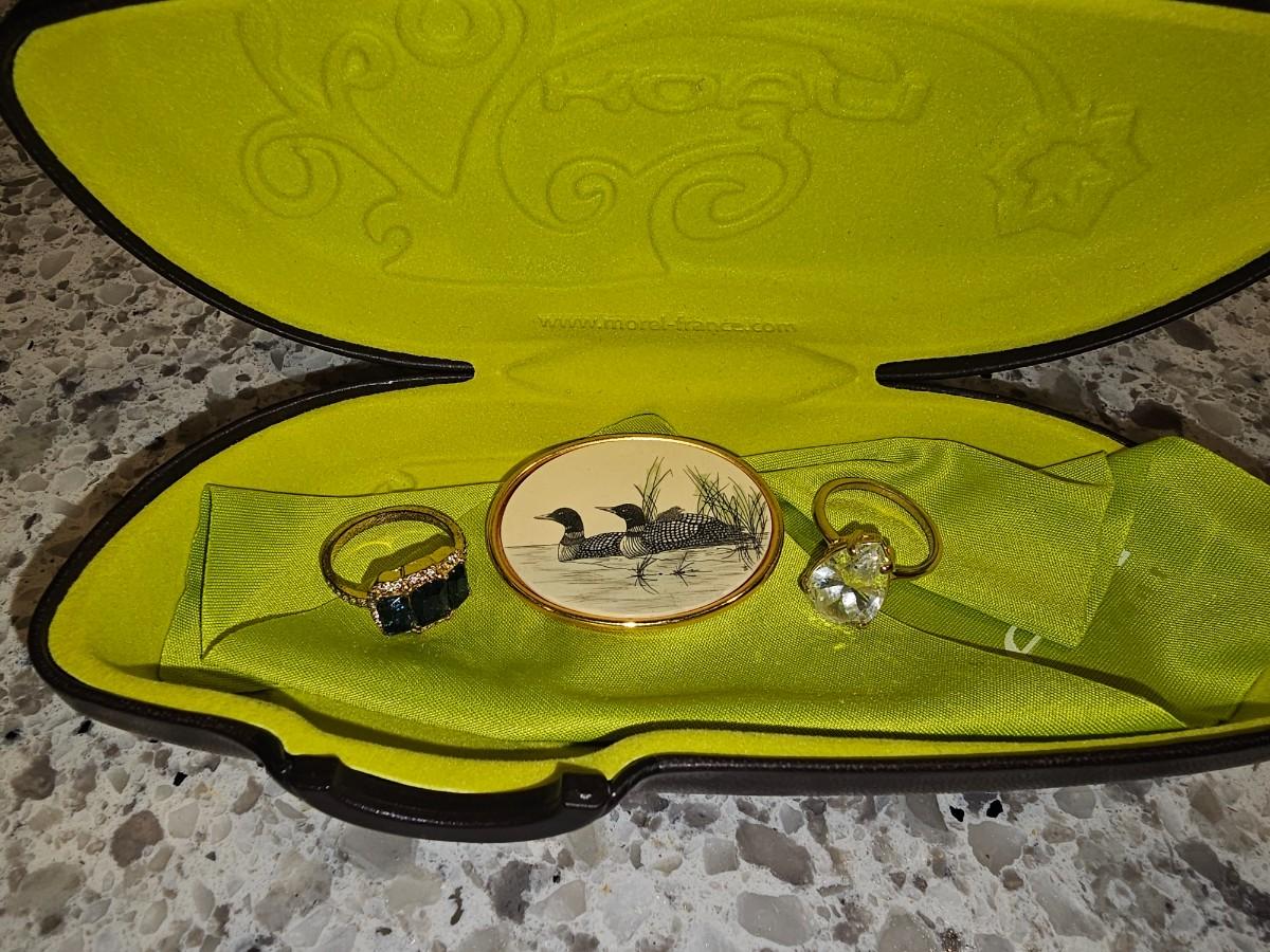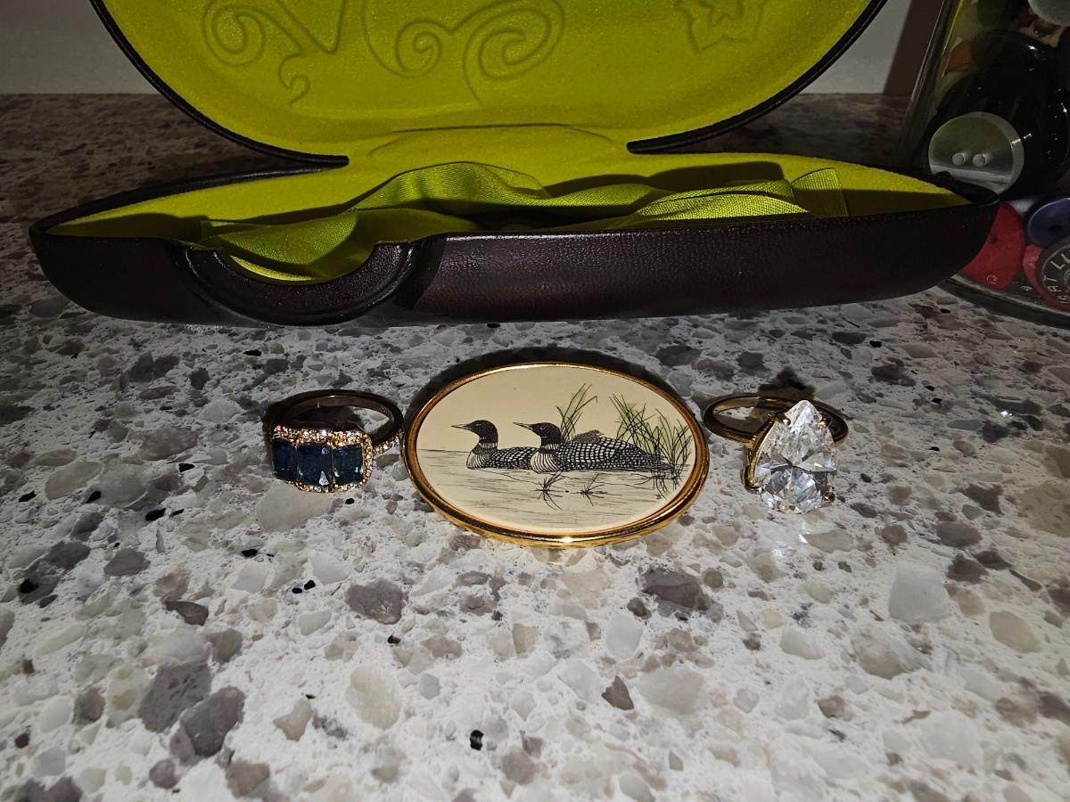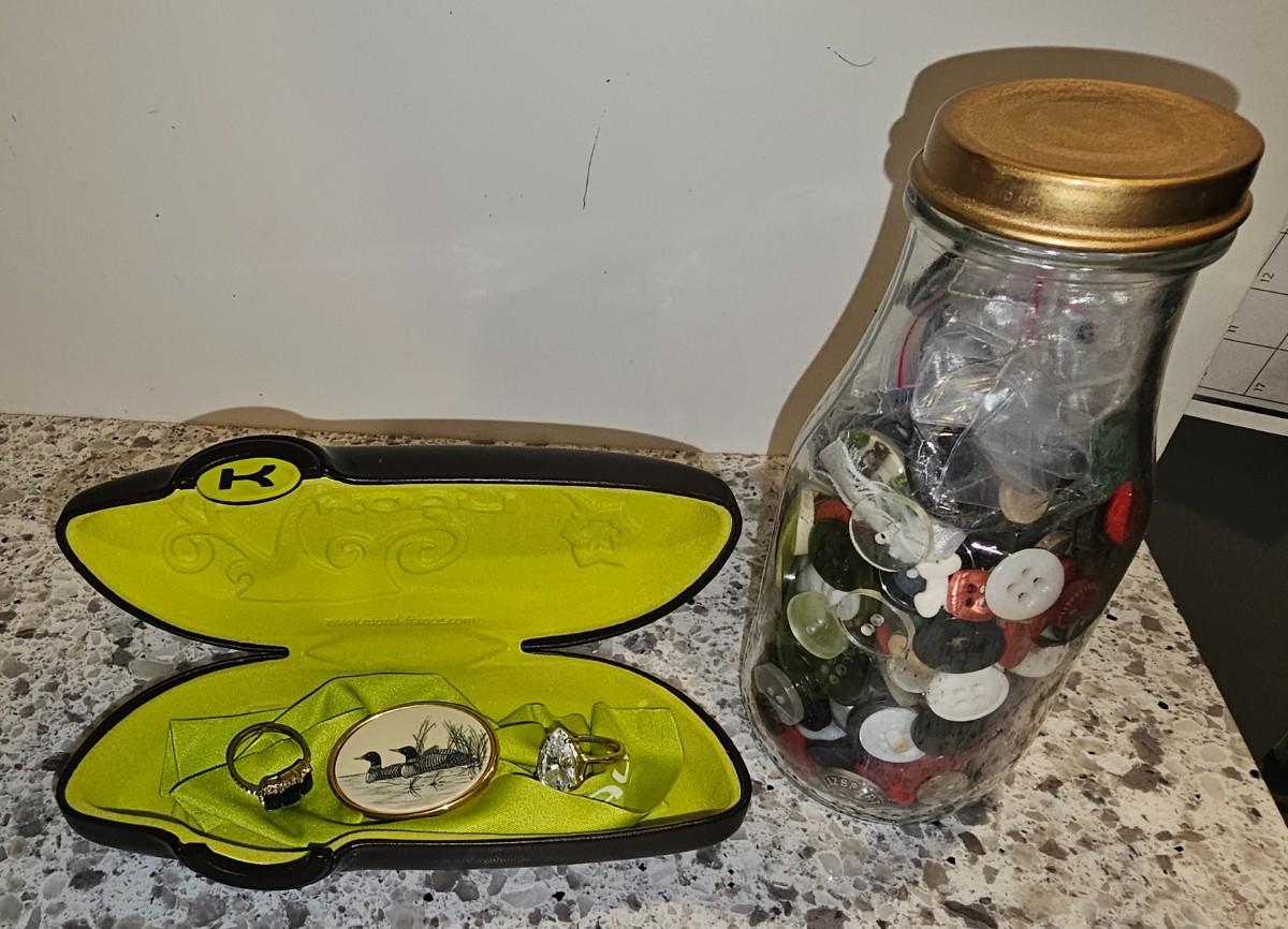 Beautiful Diamond Precious Stone Rings | Barlow Mallard Collector Pin | Jar of Vintage Buttons