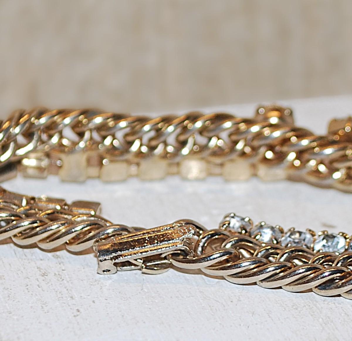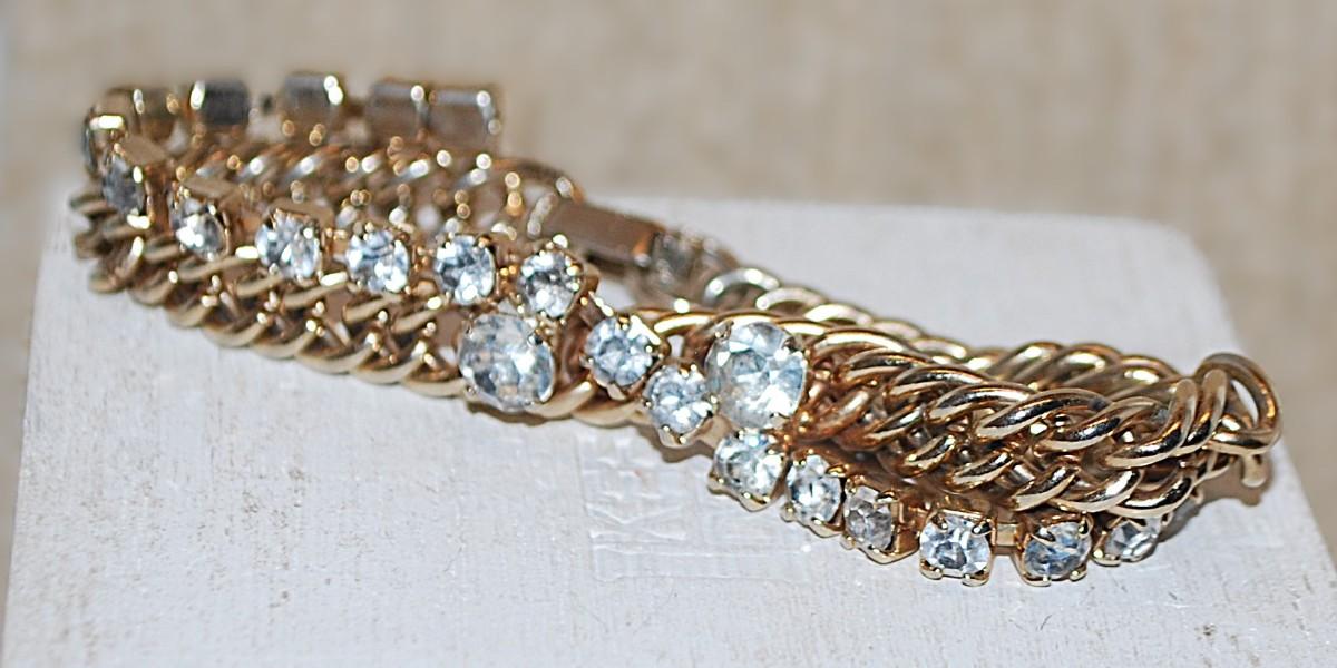 Beautiful "Diamond-Style" BRACELET (6" Circumference) with Gold Tone CHAIN LINK Band & Snap Lock Clasp