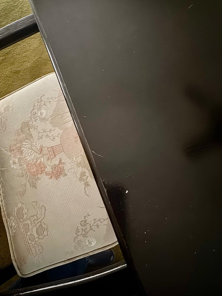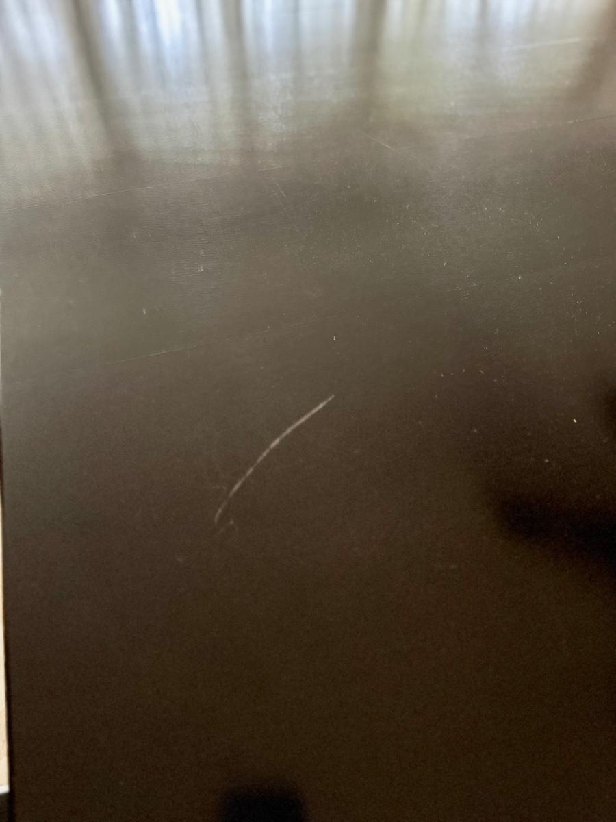 The table has a few scratches and a discoloration in the middle (see 5th pic).