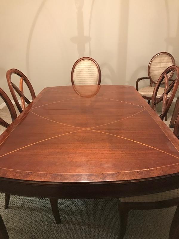 Dining set includes Matching Buffet & chairs. Has 2 leaves. Very beautiful. Excellent condition!
