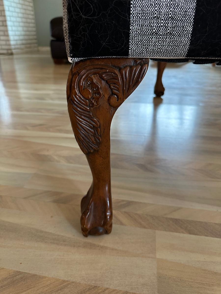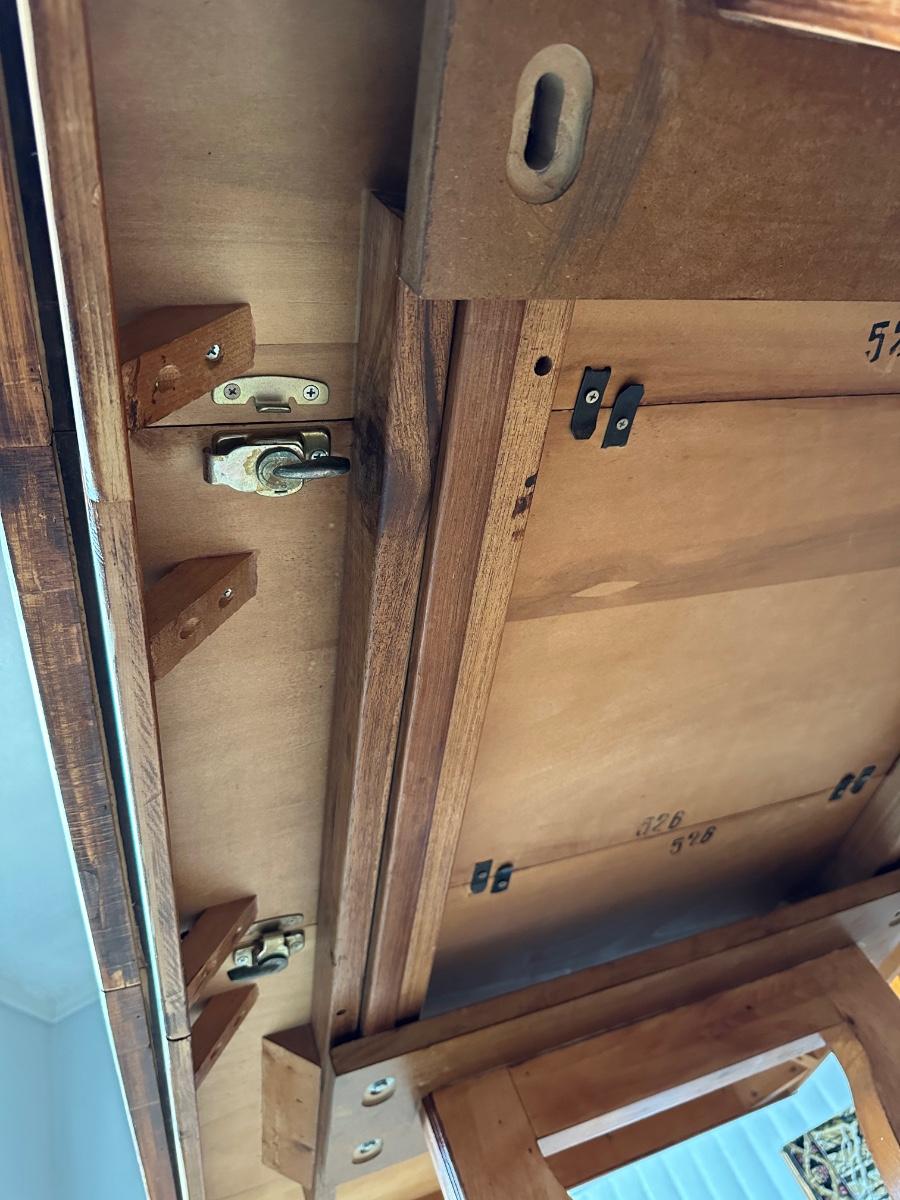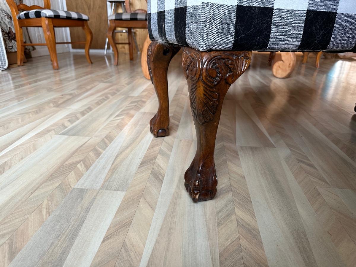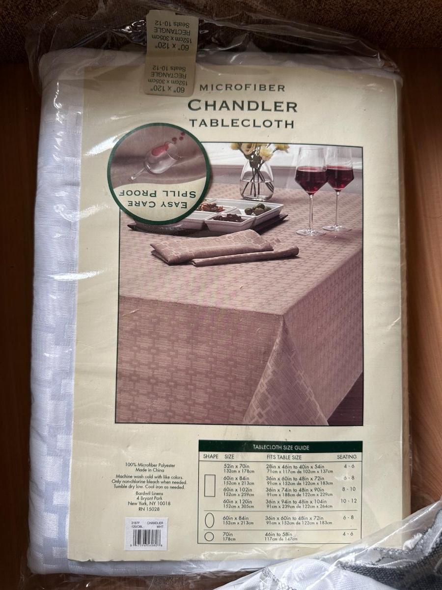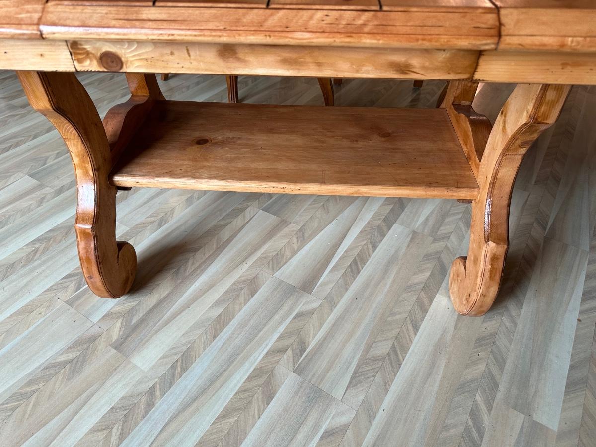 Beautiful Dining table with 8 chairs and cushioned bench. The seat cushions all match with the bench. Very nicely built table and table leaf that adds 18”. The bench does have a storage area, with more matching material and brand new tablecloth.