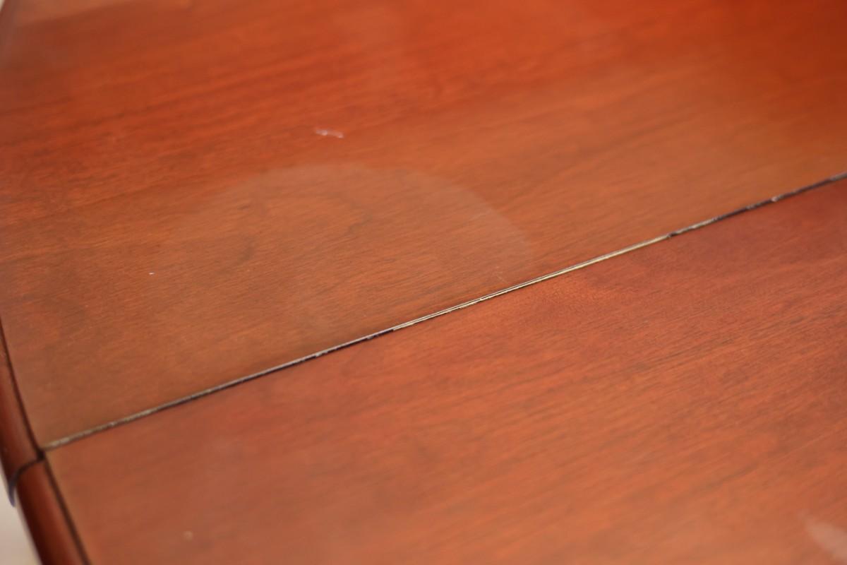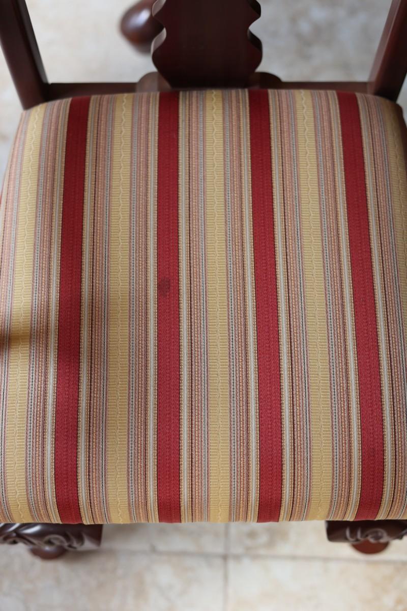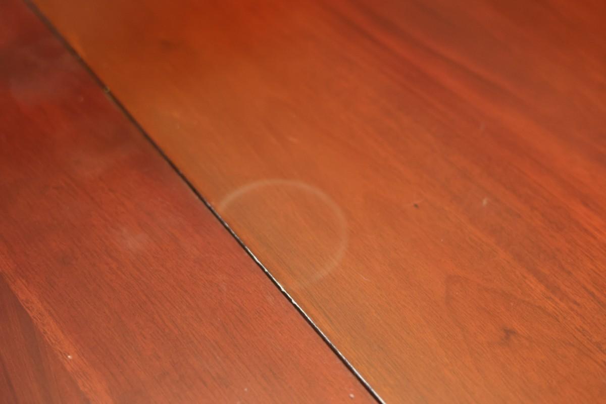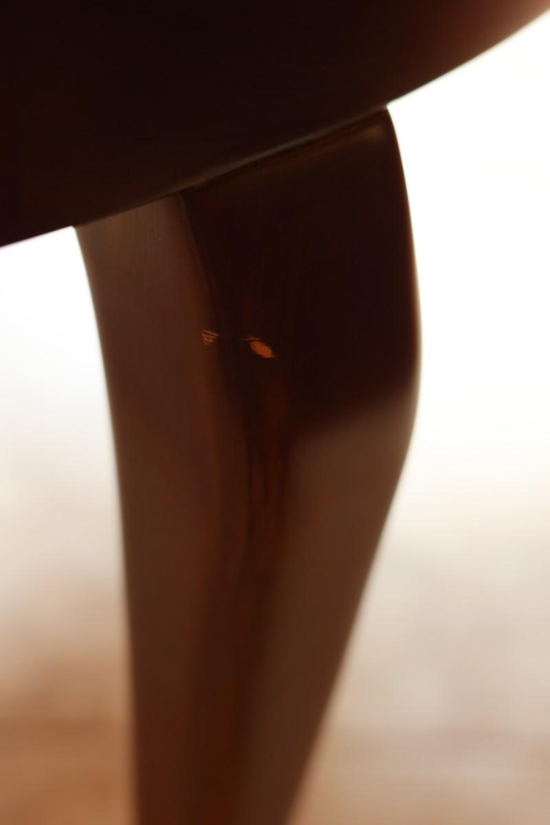 No name markings. Table has a small mark on the top, please see detailed pictures for reference. The chairs are in pristine condition, one chair has a small stain, please see pictures.