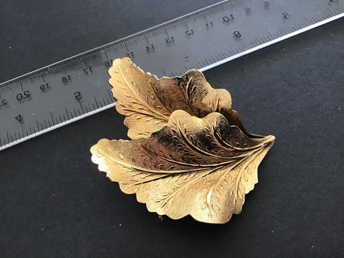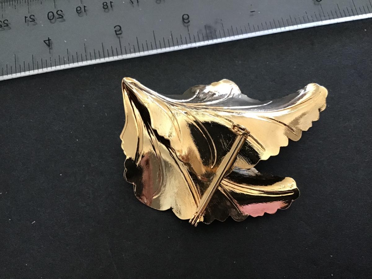 Beautiful Double Leaf Gold Tone Vintage Brooch