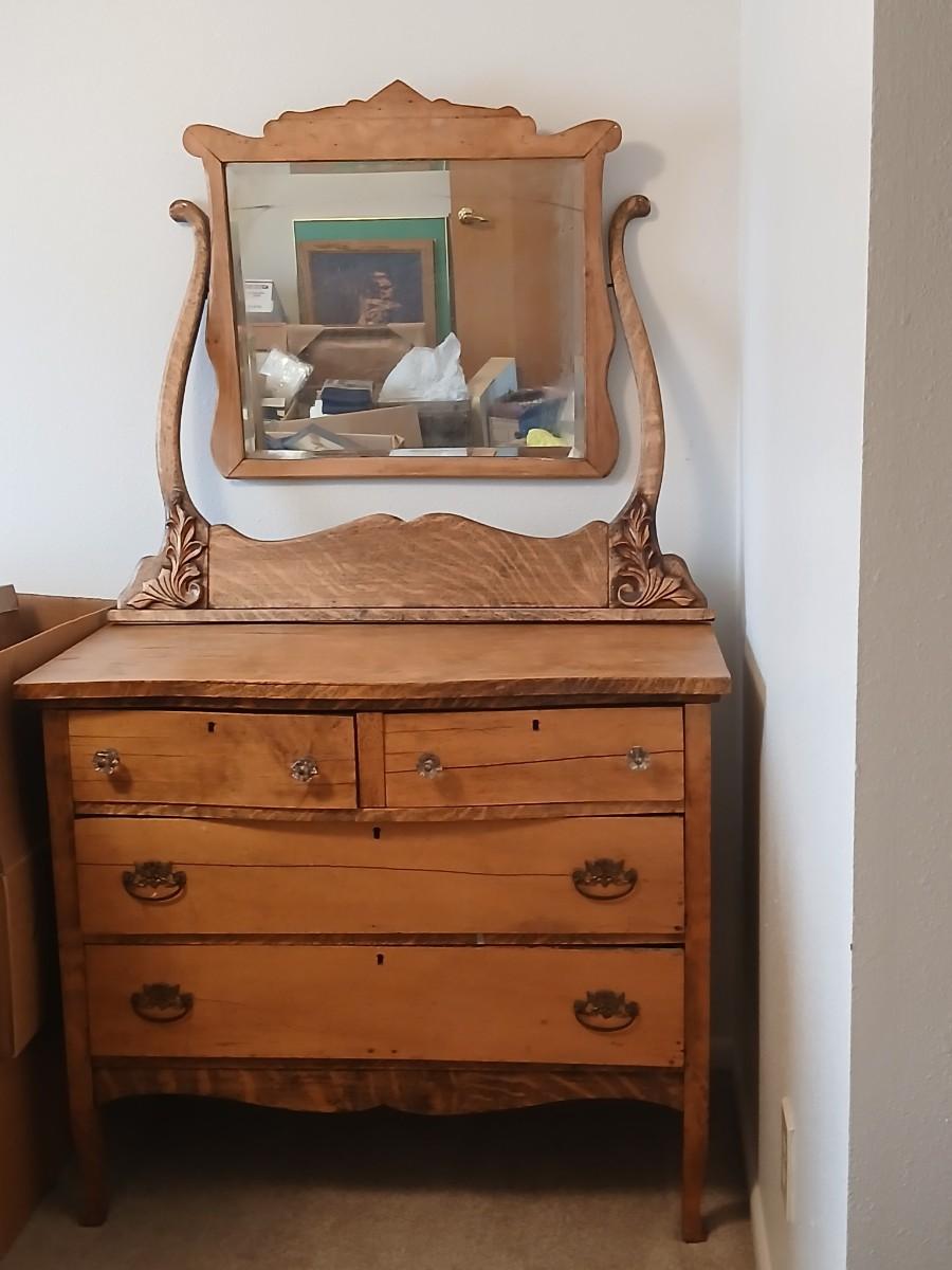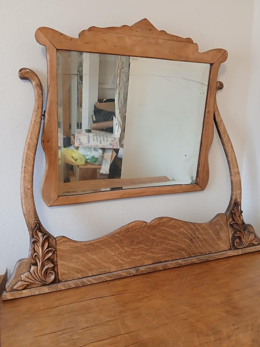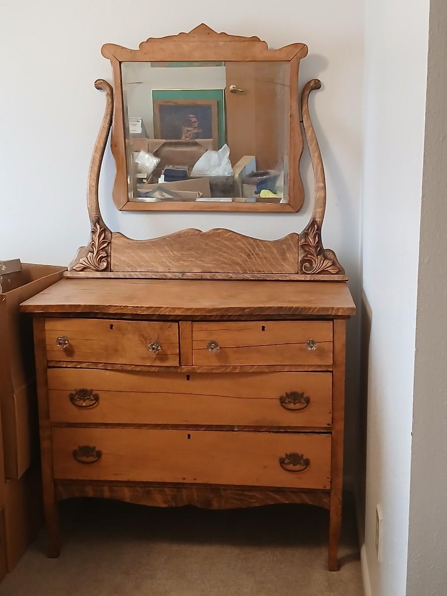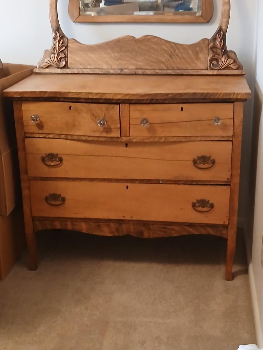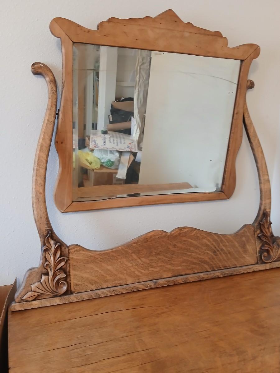 Beautiful Early era Antique dresser with a carved harp mounted Mirror