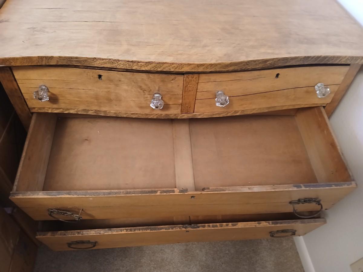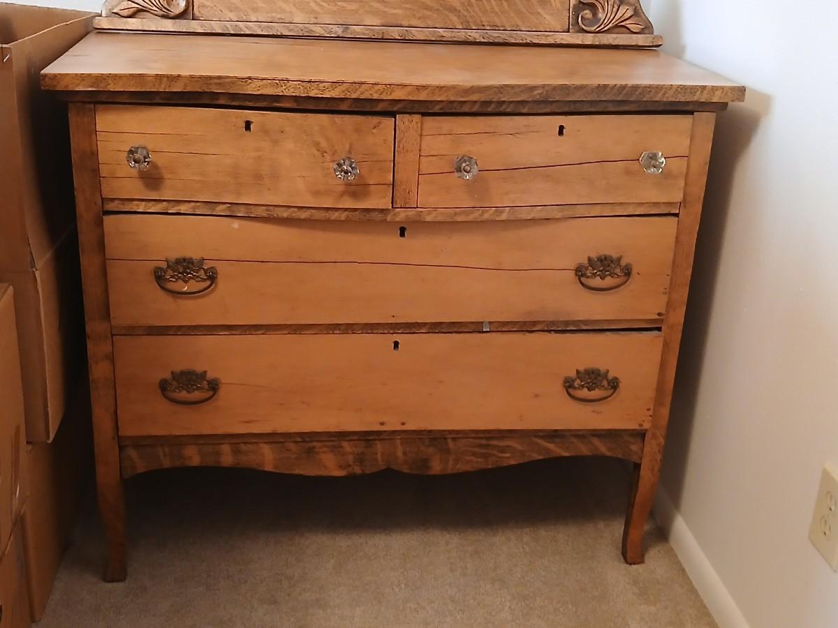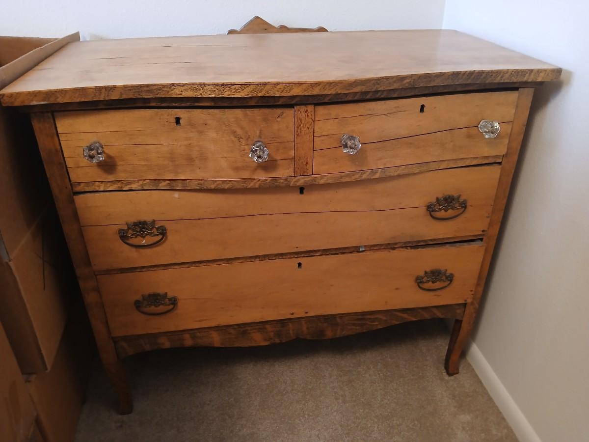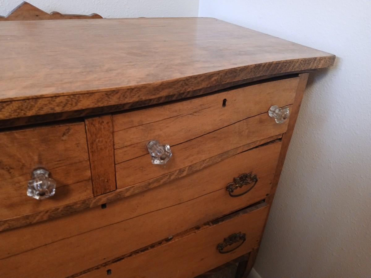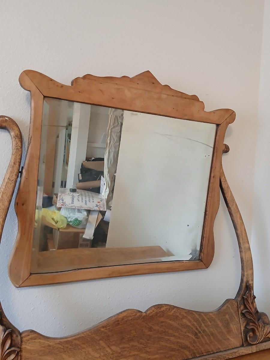 Beautiful Early era Antique dresser with a carved harp mounted Mirror