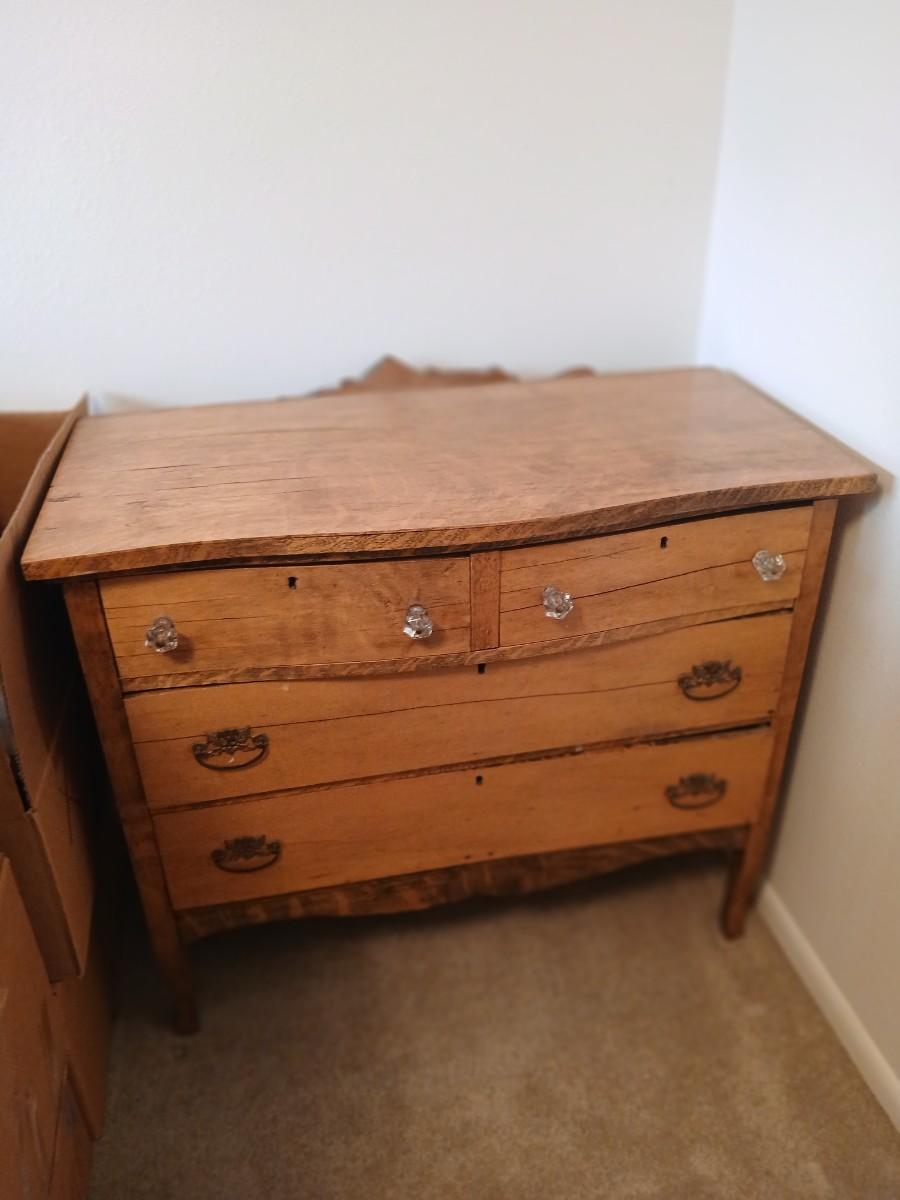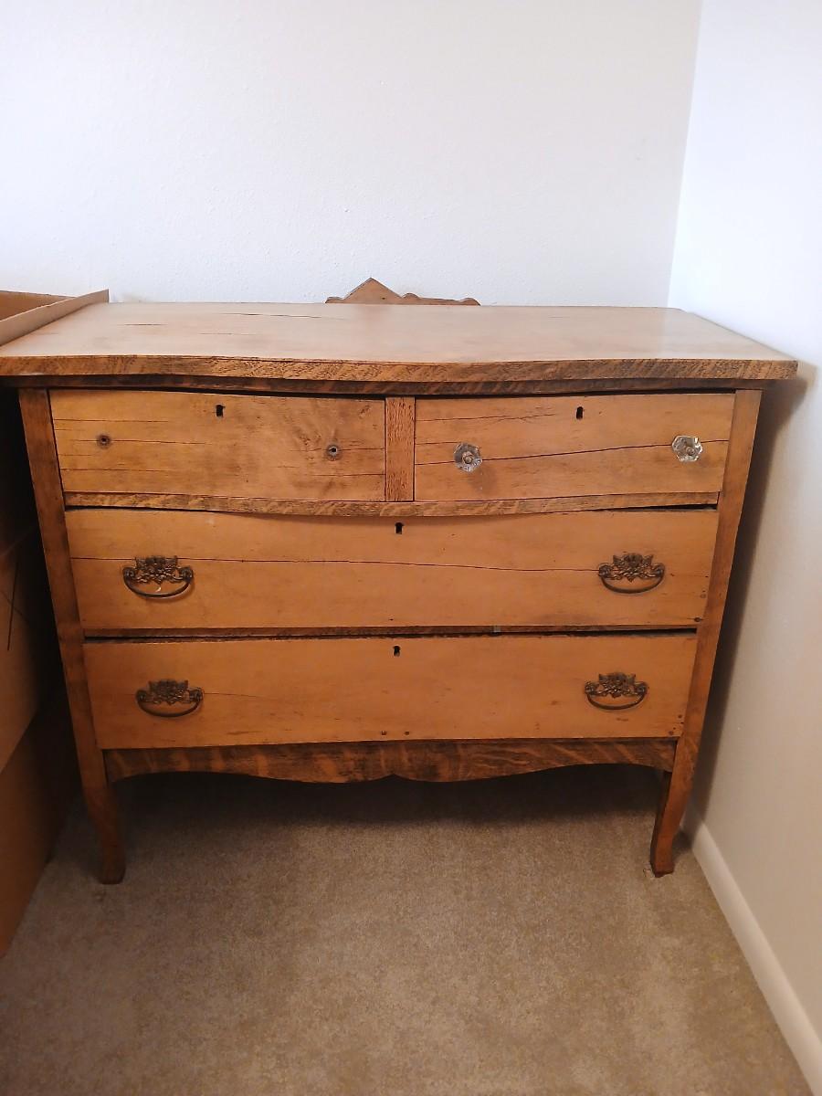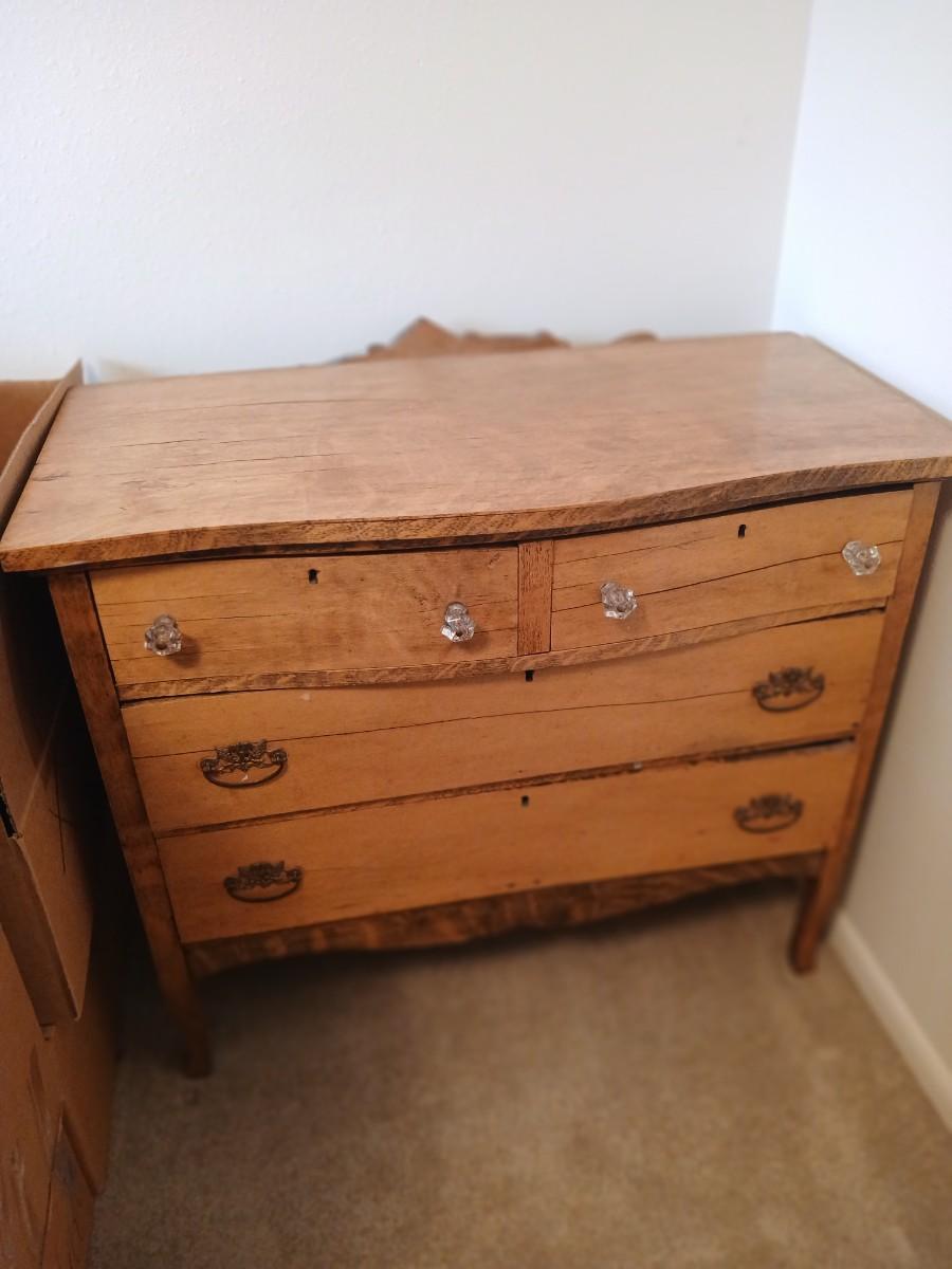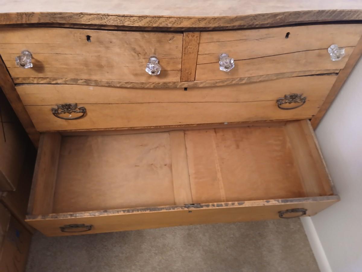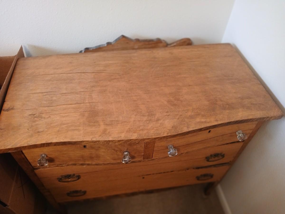 Beautiful Early era Antique dresser with a carved harp mounted Mirror