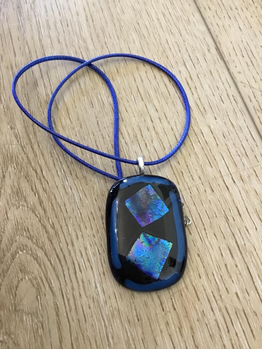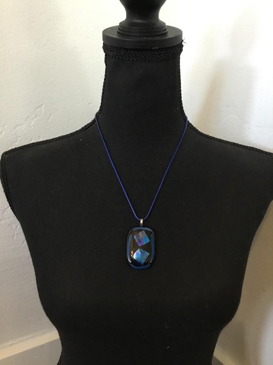 Beautiful, electric blue art glass pendant necklace