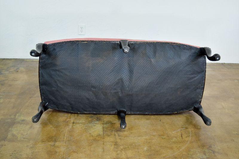 The item is in fair overall condition, with some signs of wear from usage and storage. The wood may have some nicks and marks on it, and the fabric may have some spots of wear. The item measures approximately 48" long X 22" wide X 18" tall.