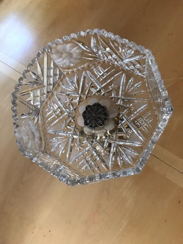 Beautiful Etched Crystal Bowl Dish This is a beautiful crystal dish. It has a floral etched design. It has no chips or cracks.