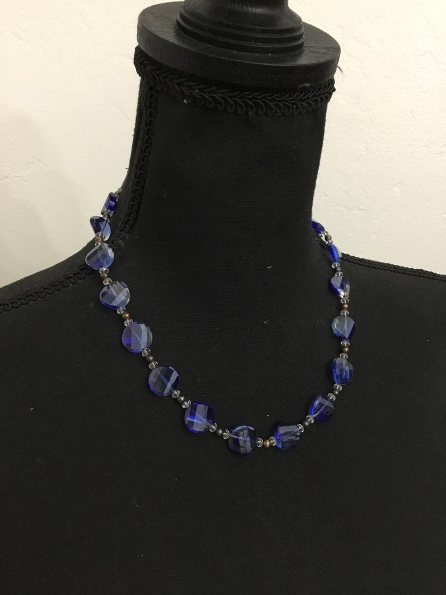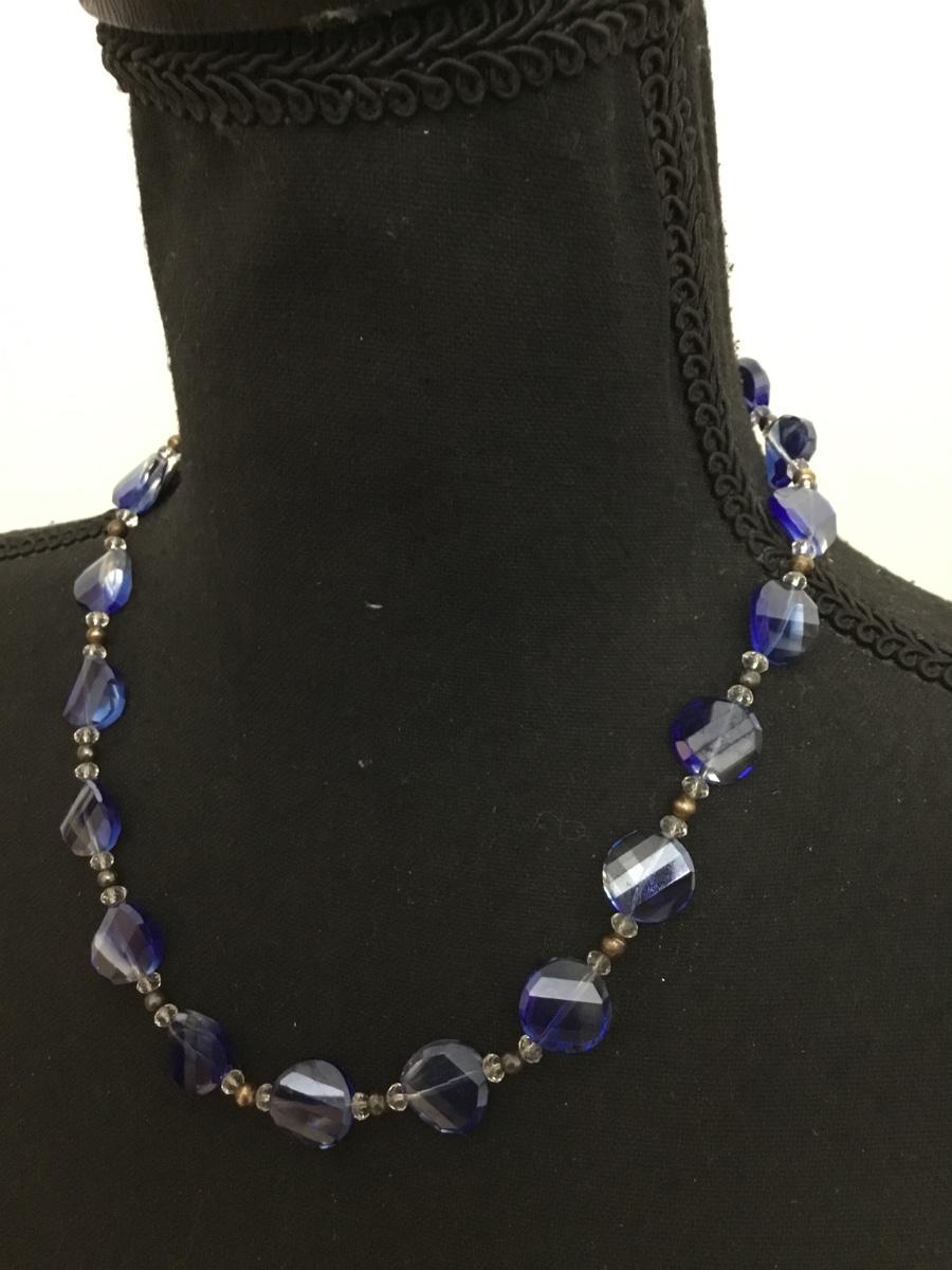 Beautiful, faceted, crystal light, two-tone blue bead necklace