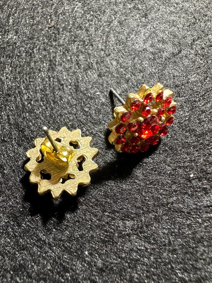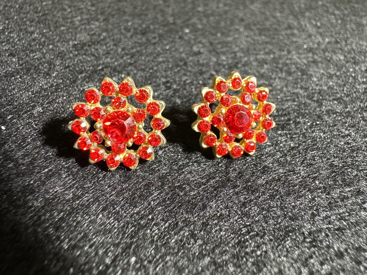 Beautiful fashion Gold tone red rhinestone stud earrings