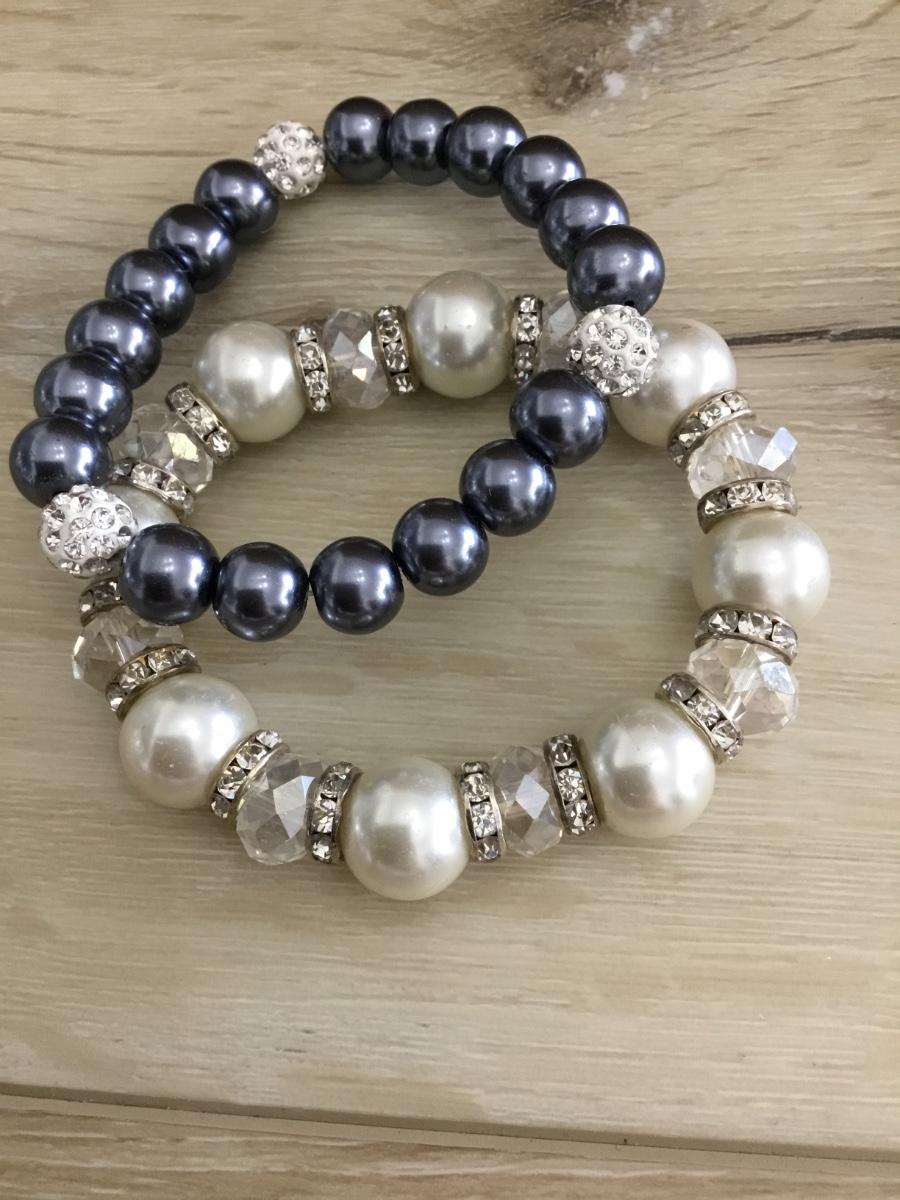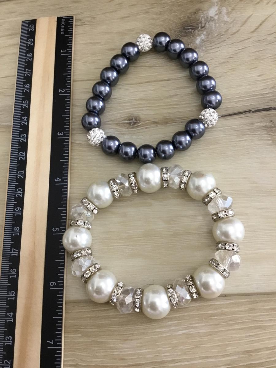 Beautiful faux pearl with rhinestone game, glass, accent bead, stretchy bracelets