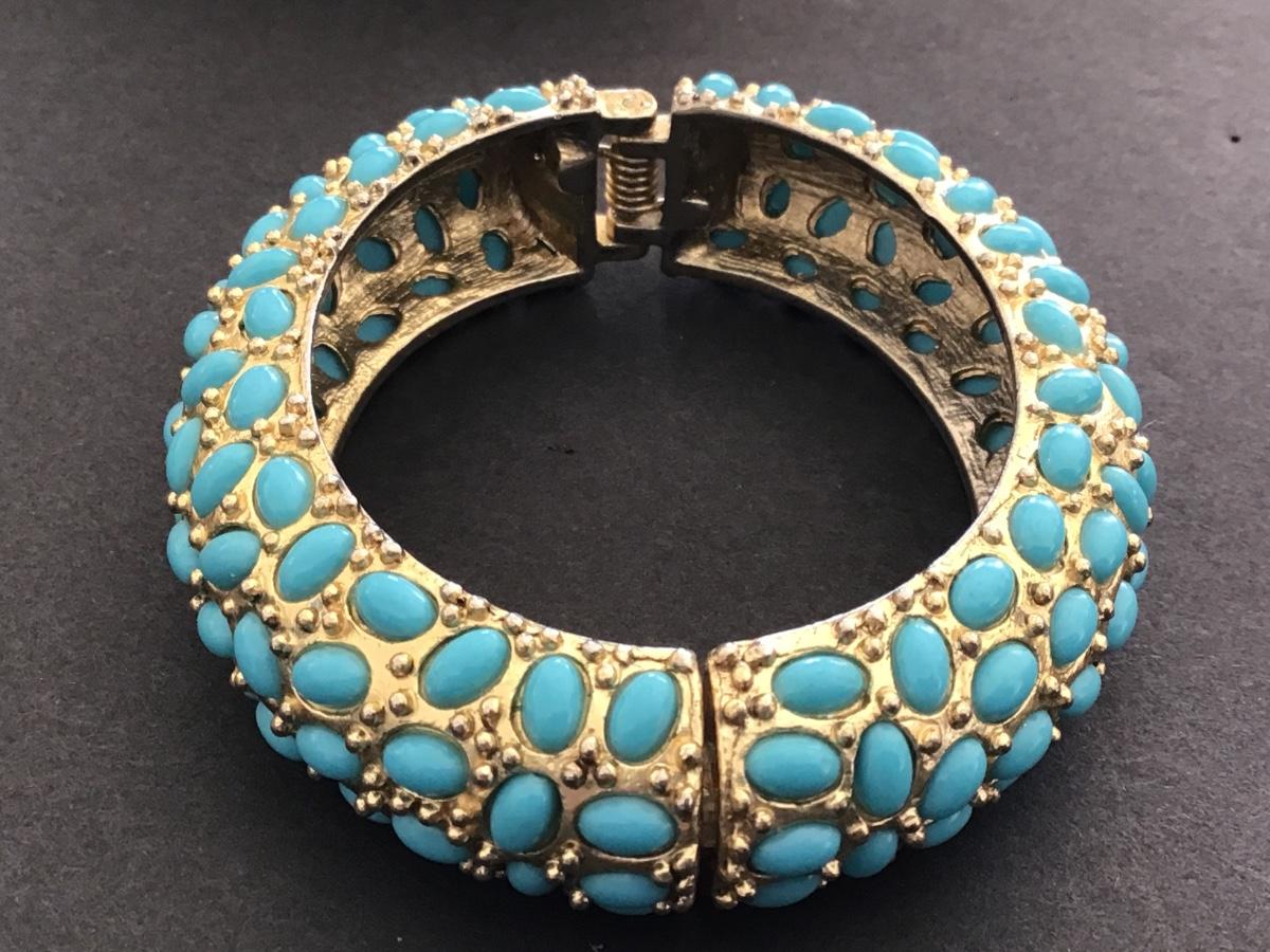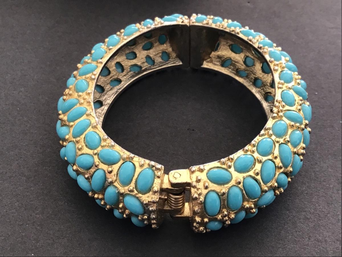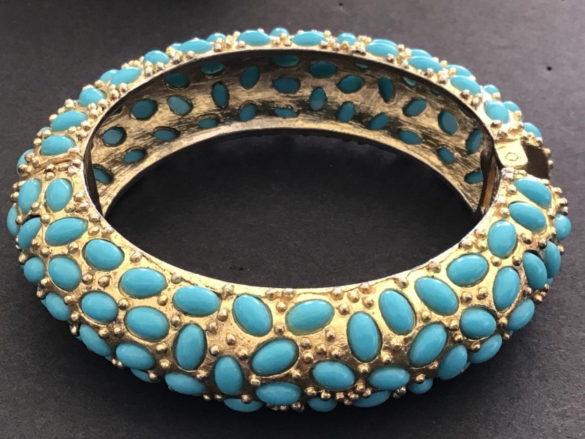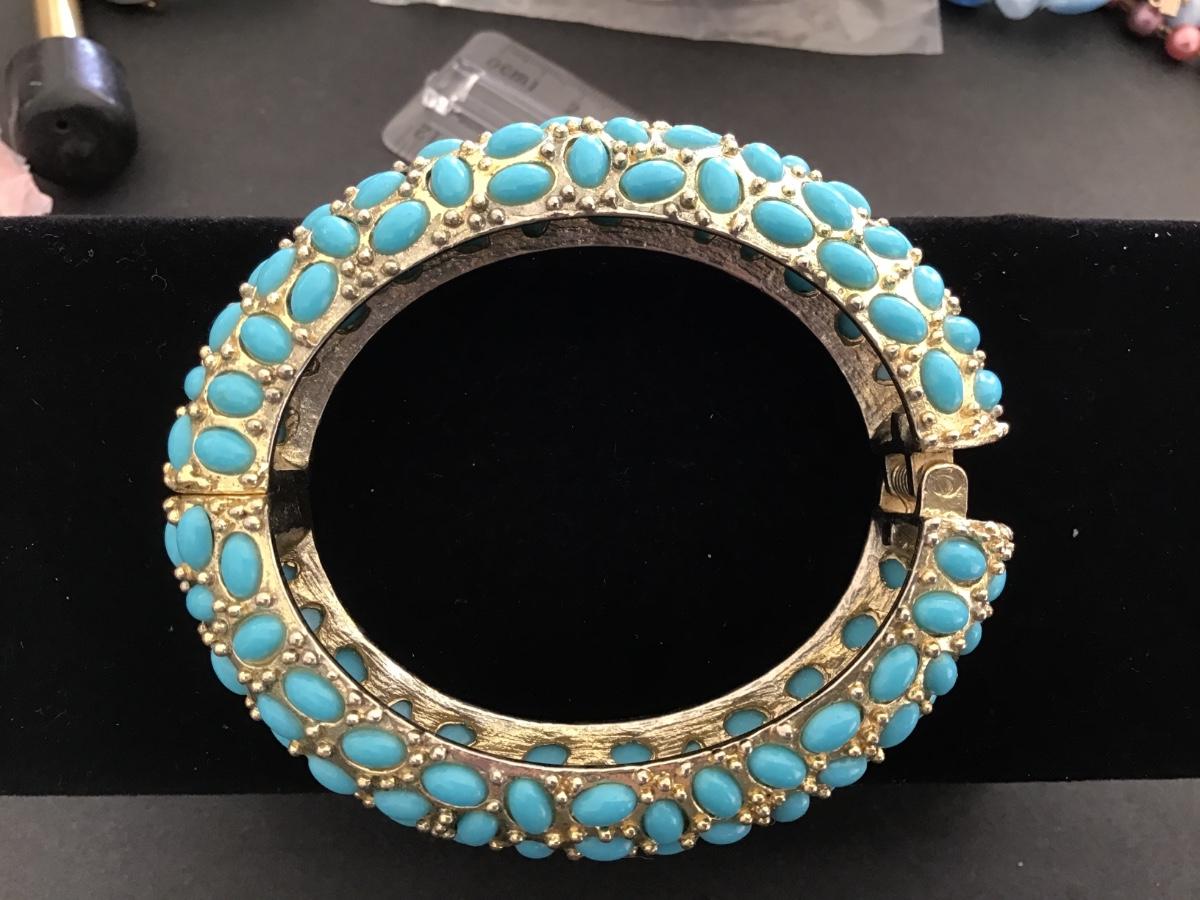 Beautiful Faux Turquoise Hinged Bangle Bracelet