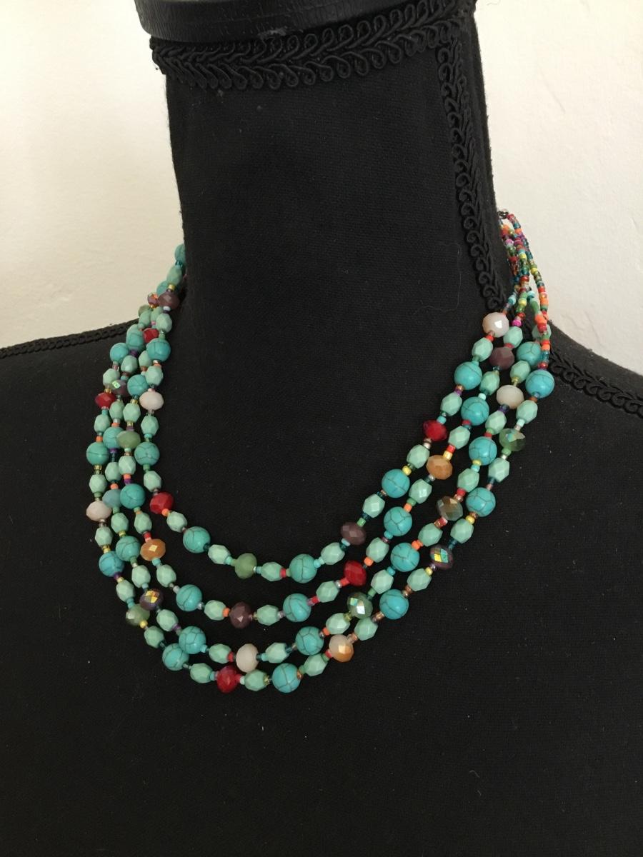 Beautiful faux turquoise stone bead statement necklace