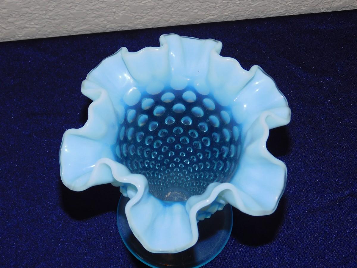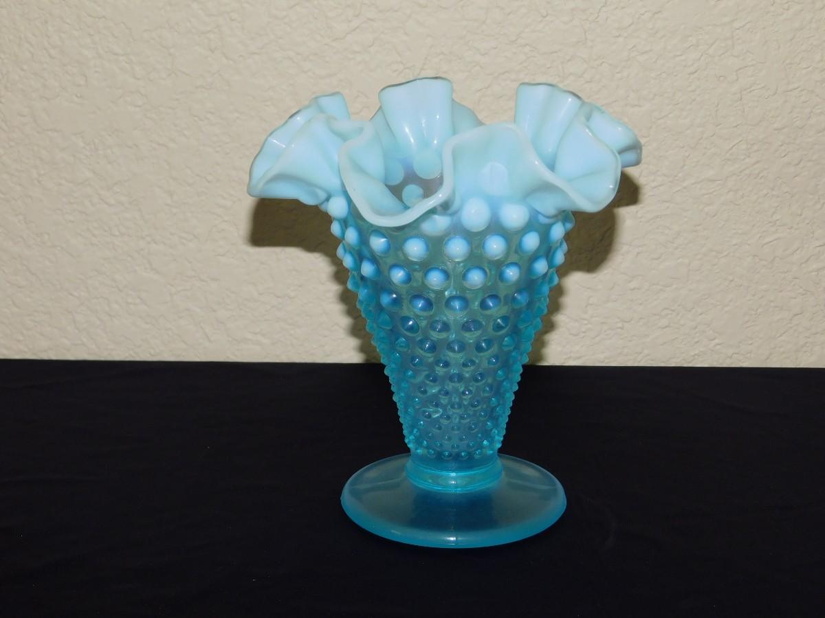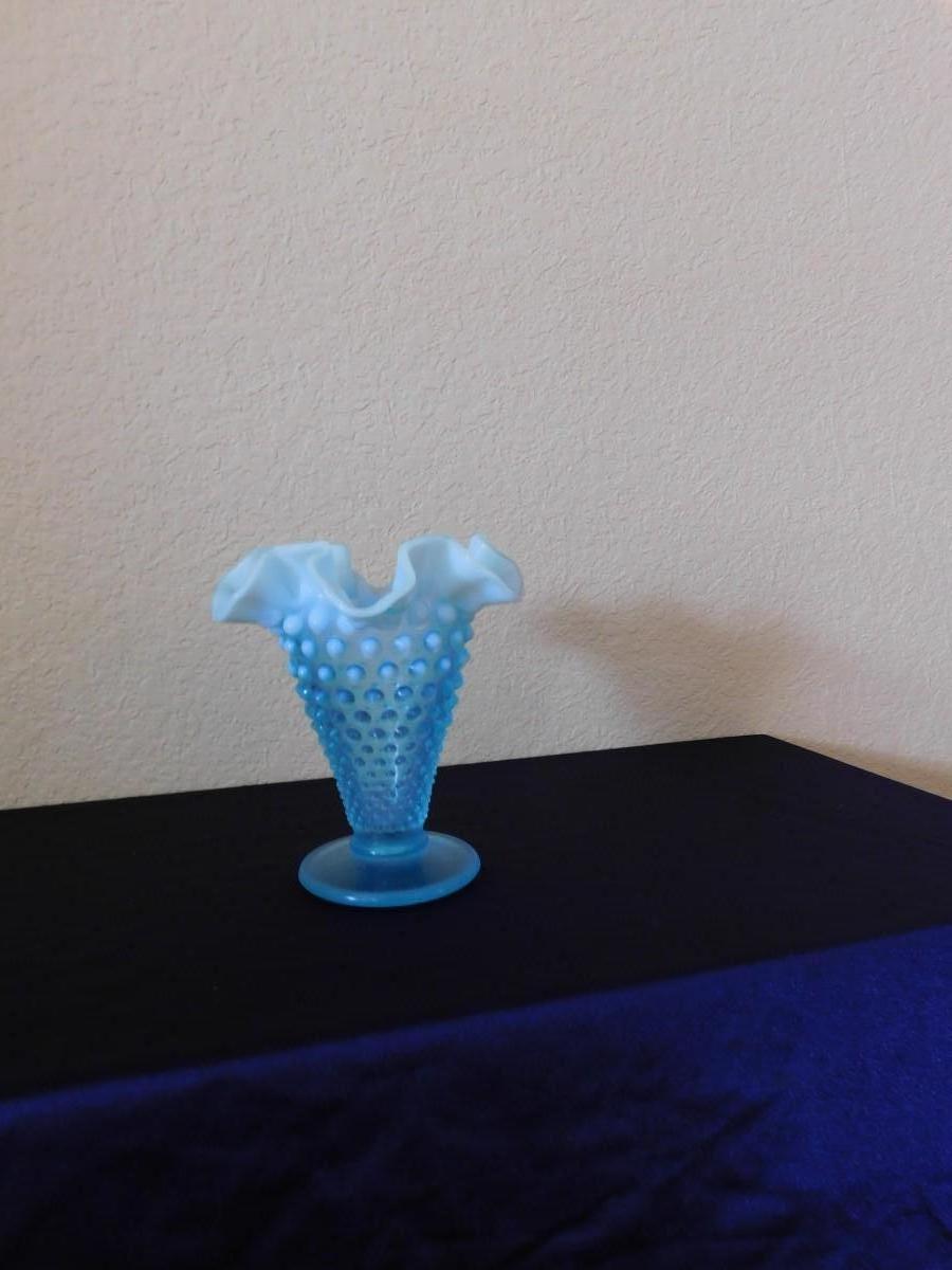 BEAUTIFUL FENTON AQUA BLUE OPALESCENT HOBNAIL 7.5" RUFFLED VASE