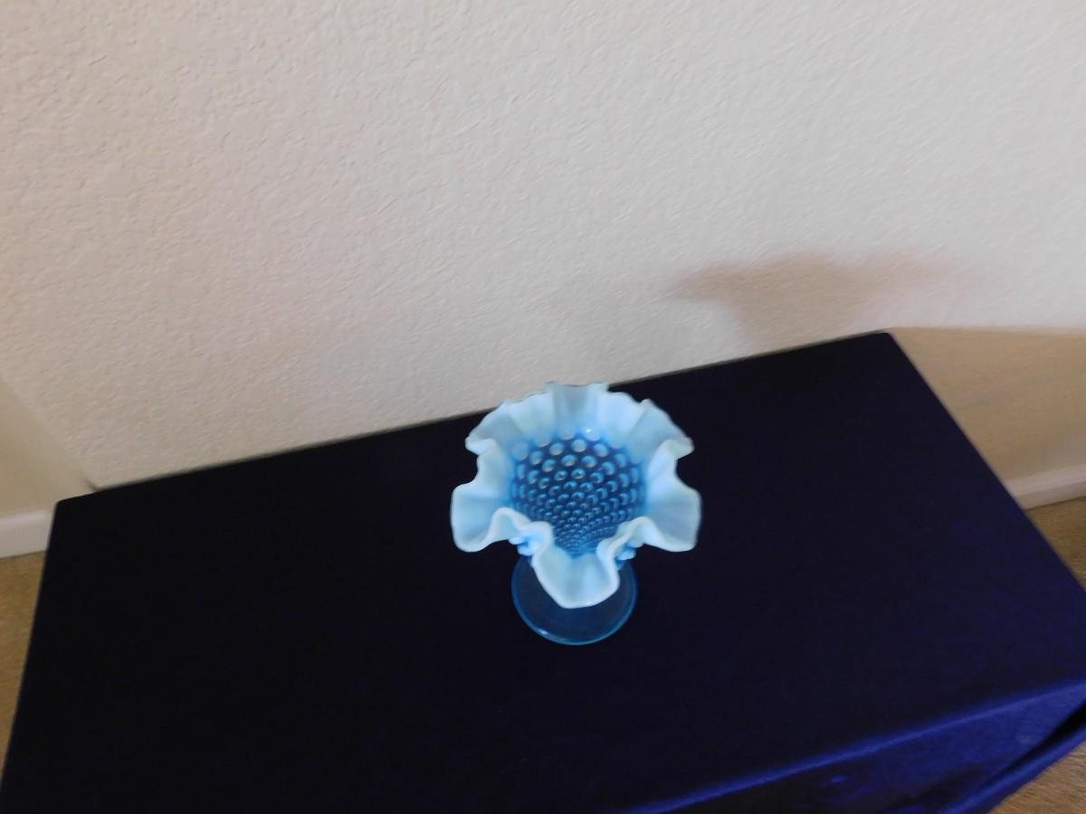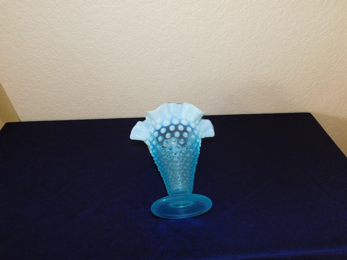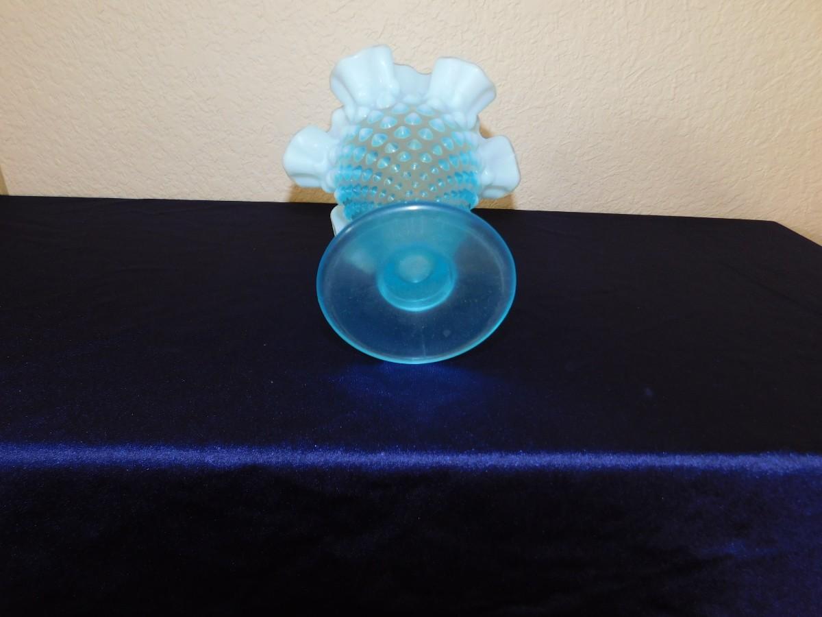 BEAUTIFUL FENTON AQUA BLUE OPALESCENT HOBNAIL 7.5" RUFFLED VASE