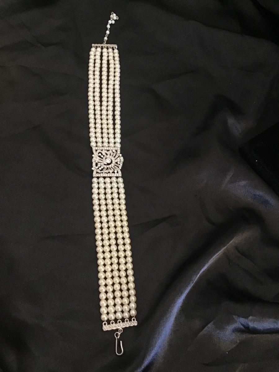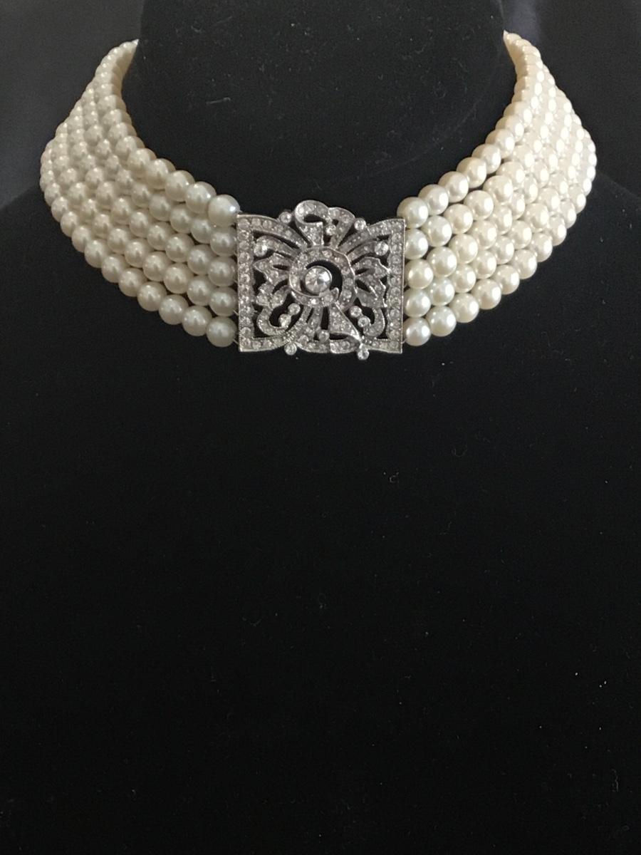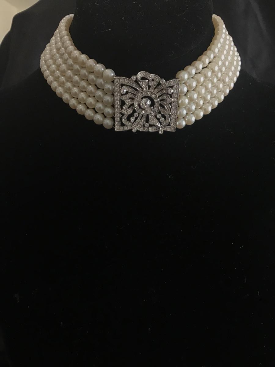 Beautiful Five strand pearl choker with faux Diamond pendant