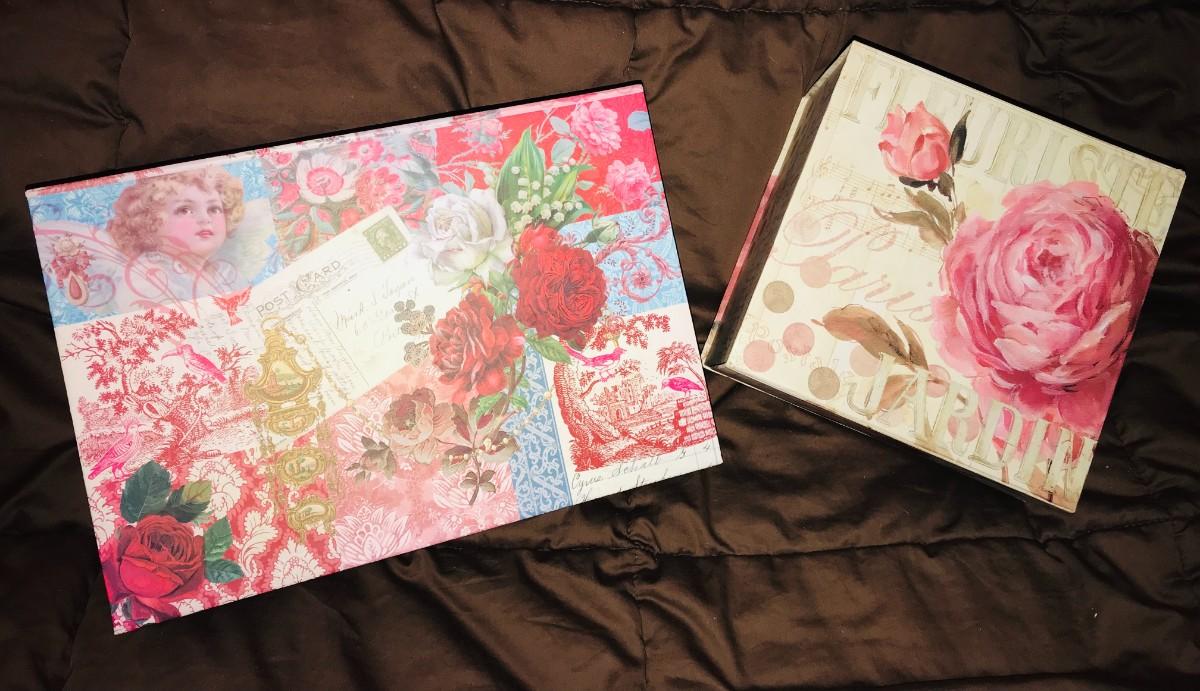 Beautiful Floral designs on this pair of Embellishment Storage Boxes