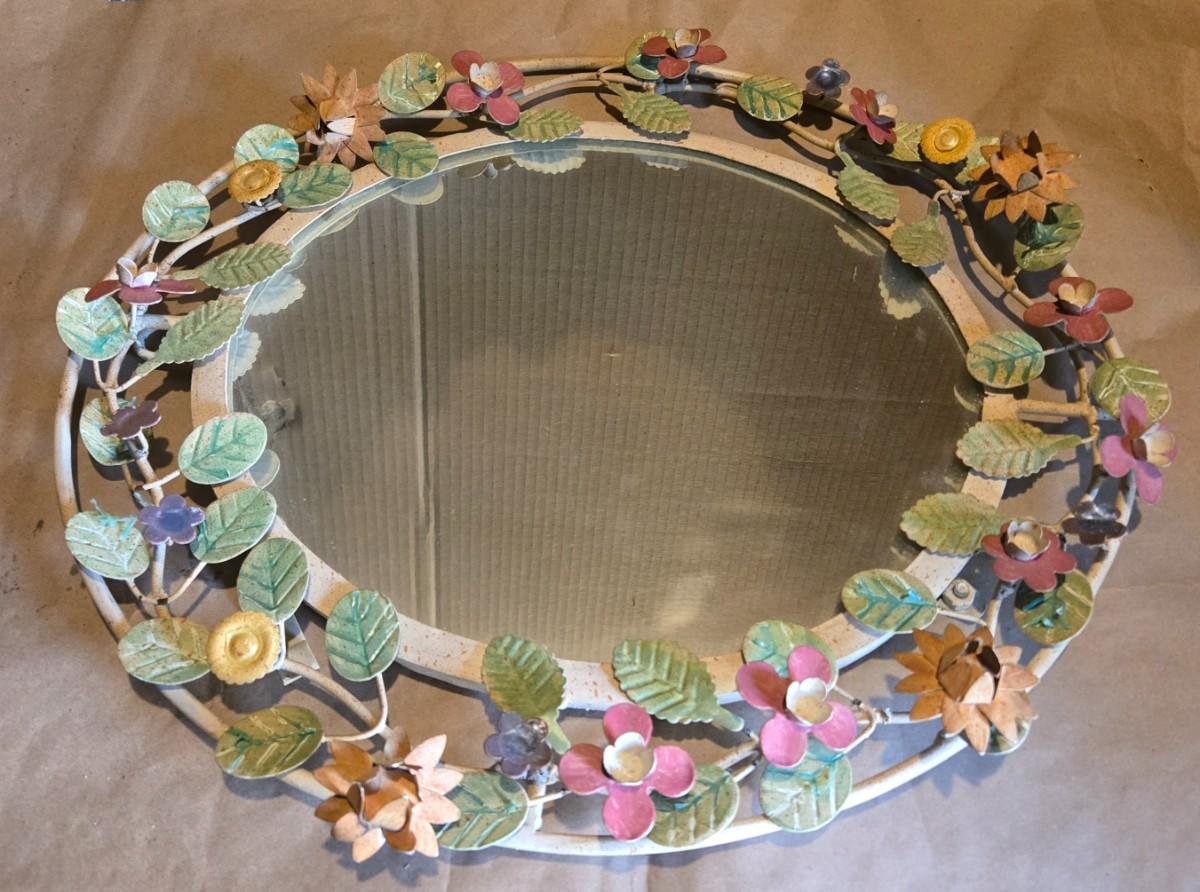 Approx 24" across, Metal floral wall mirror. Very Pretty!